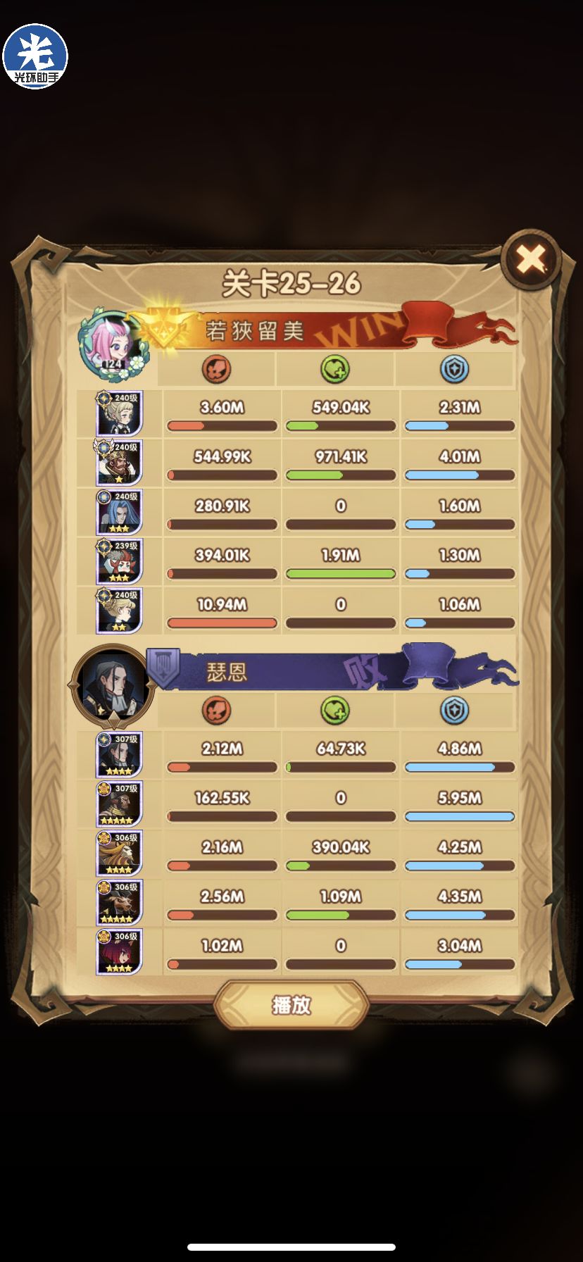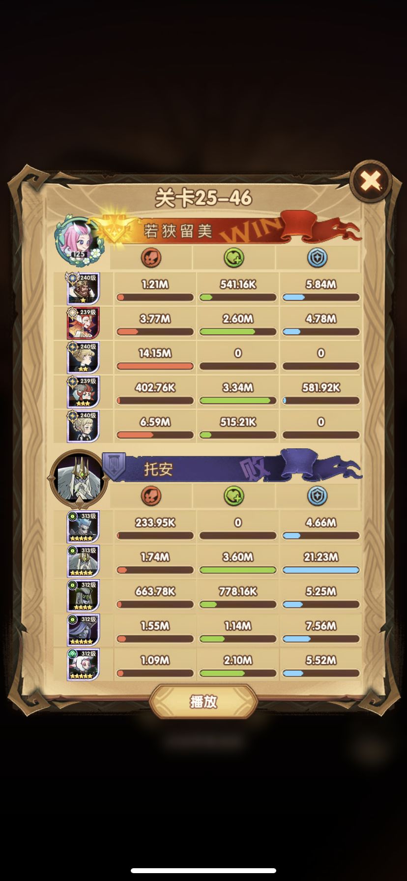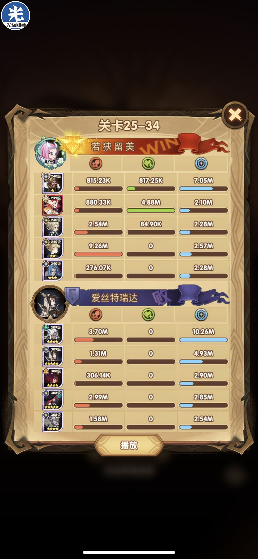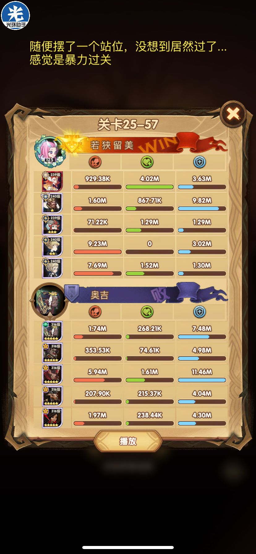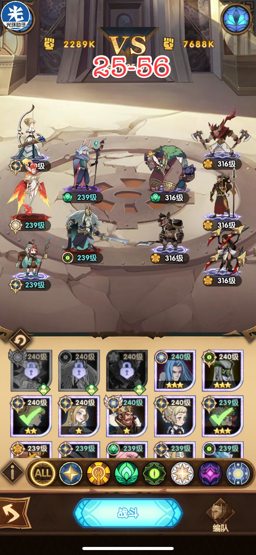 基本上均等239,打算到26章卡瓶子卡装备,佛系占星,为以后两队推图作准备😂