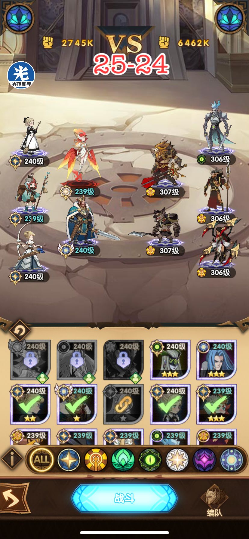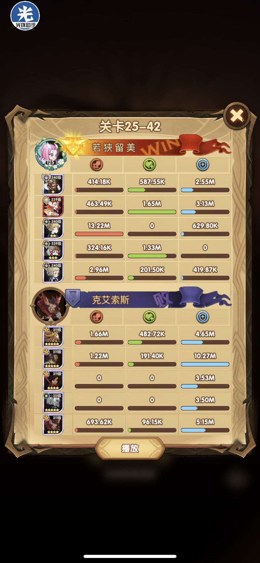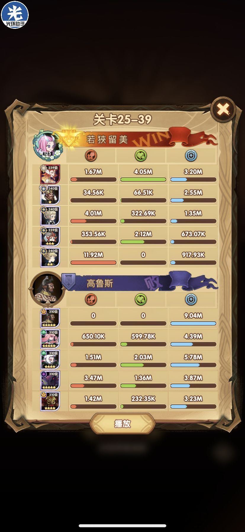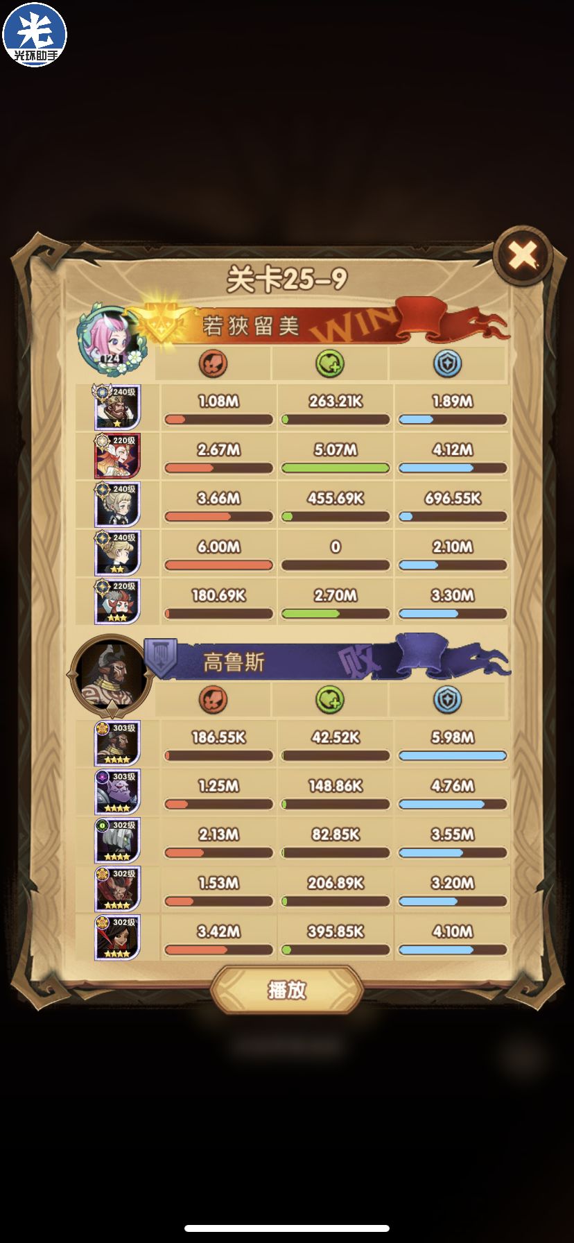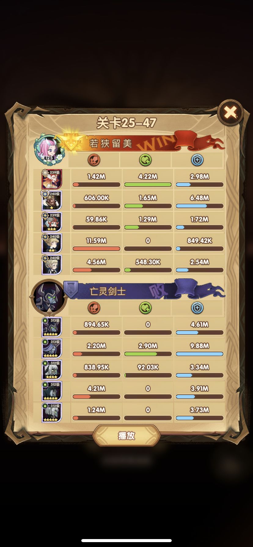 基本上均等239,打算到26章卡瓶子卡装备,佛系占星,为以后两队推图作准备😂
