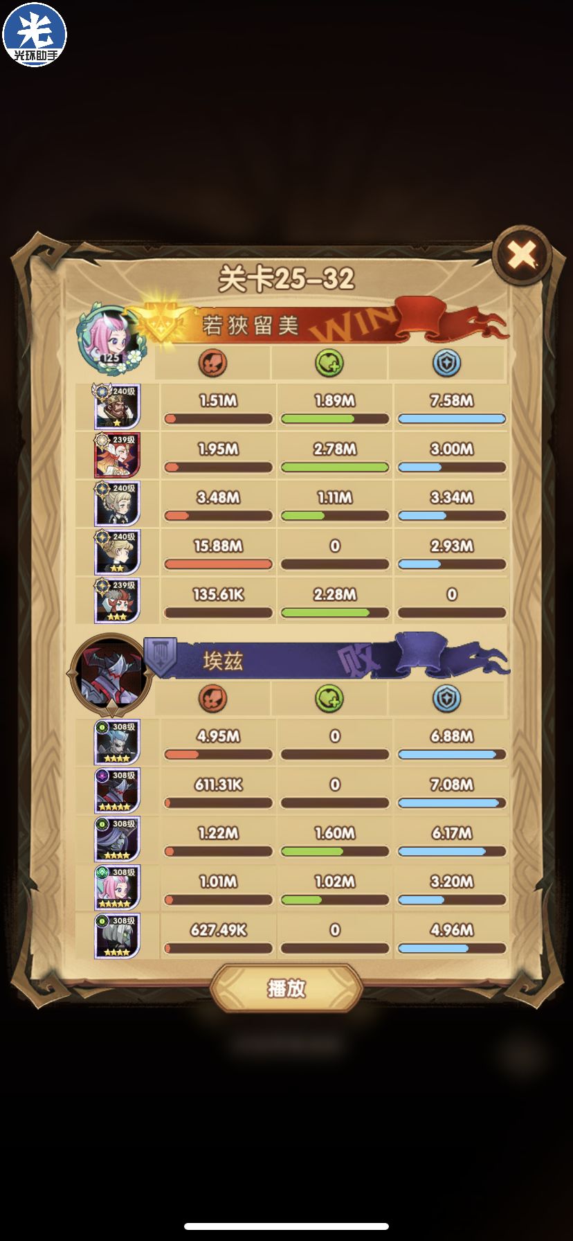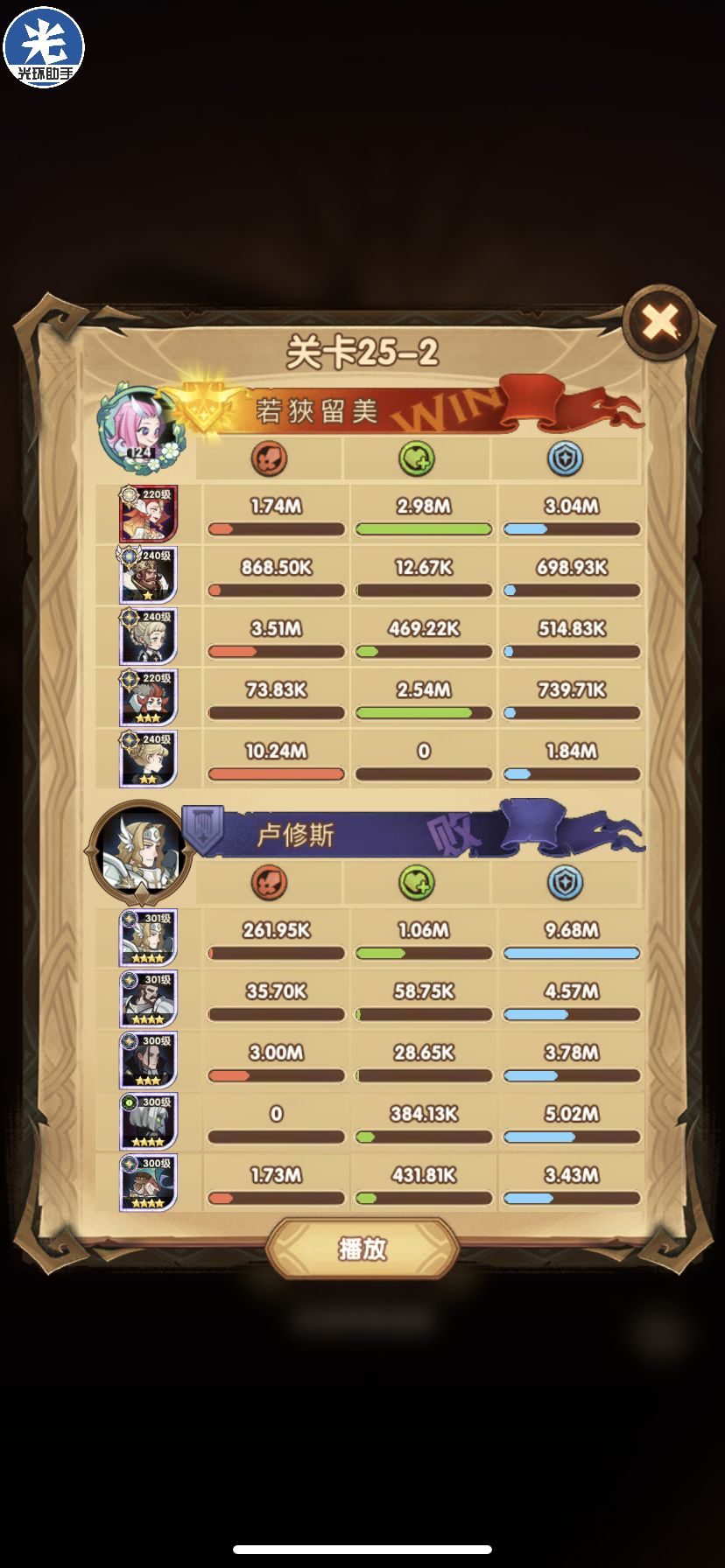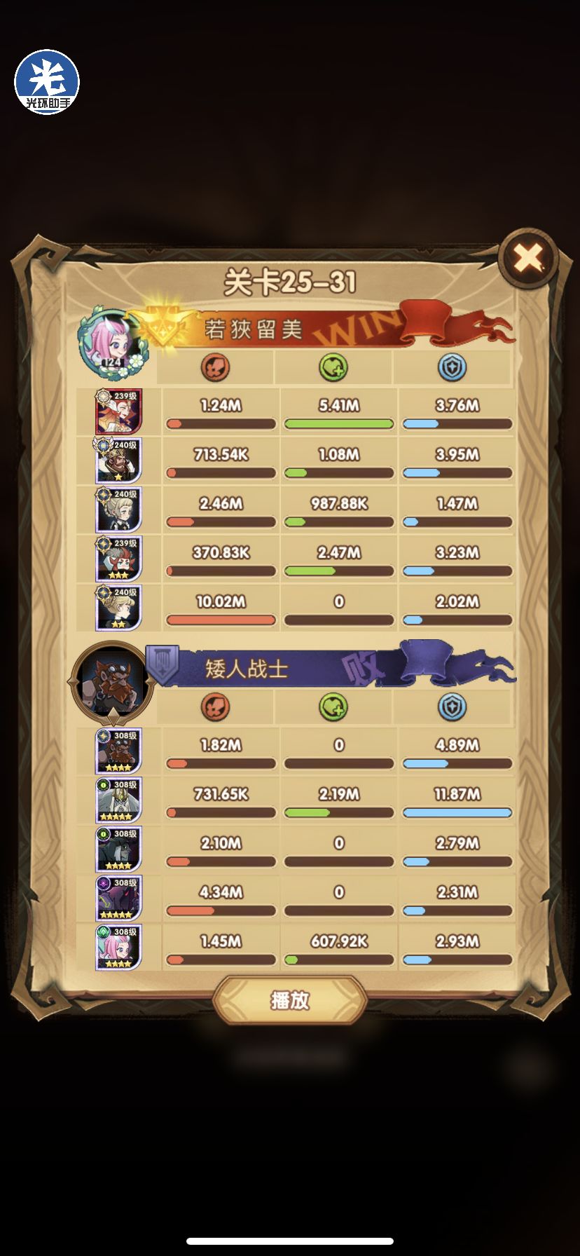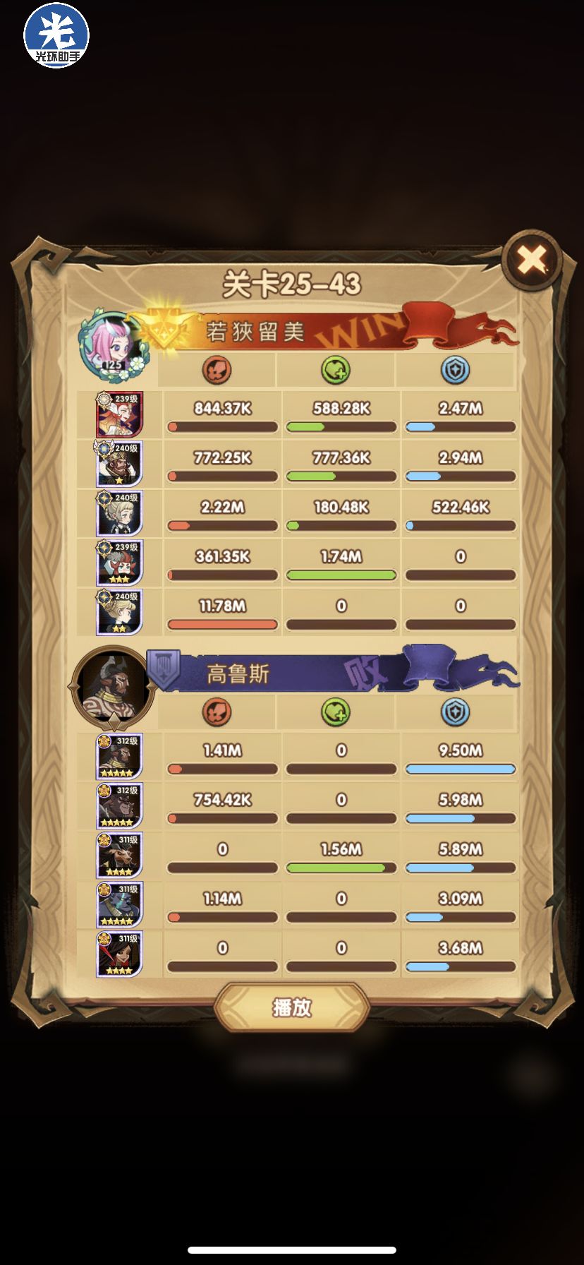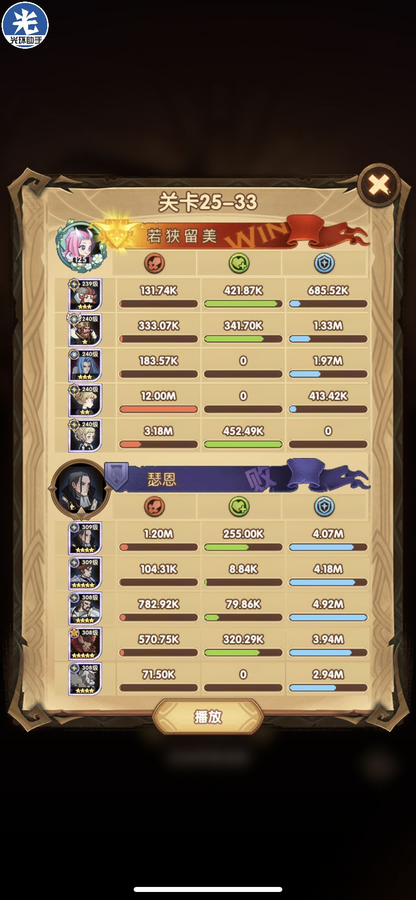 基本上均等239,打算到26章卡瓶子卡装备,佛系占星,为以后两队推图作准备😂