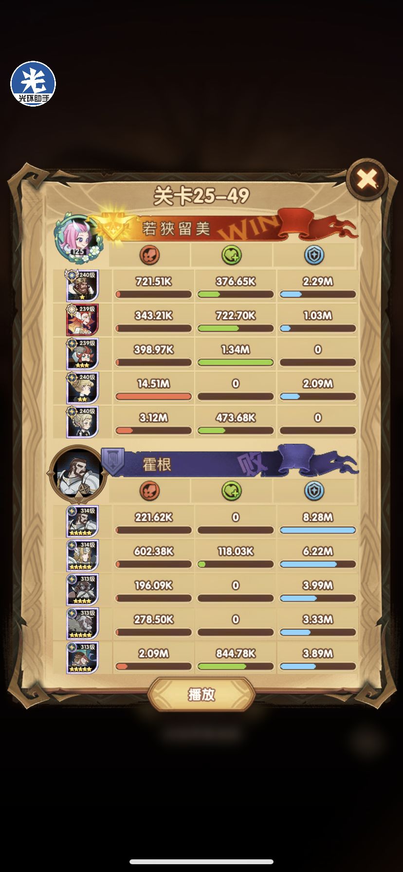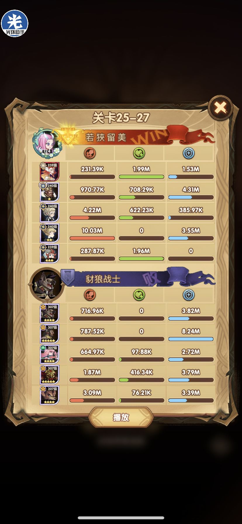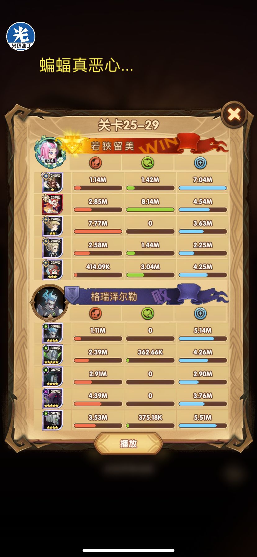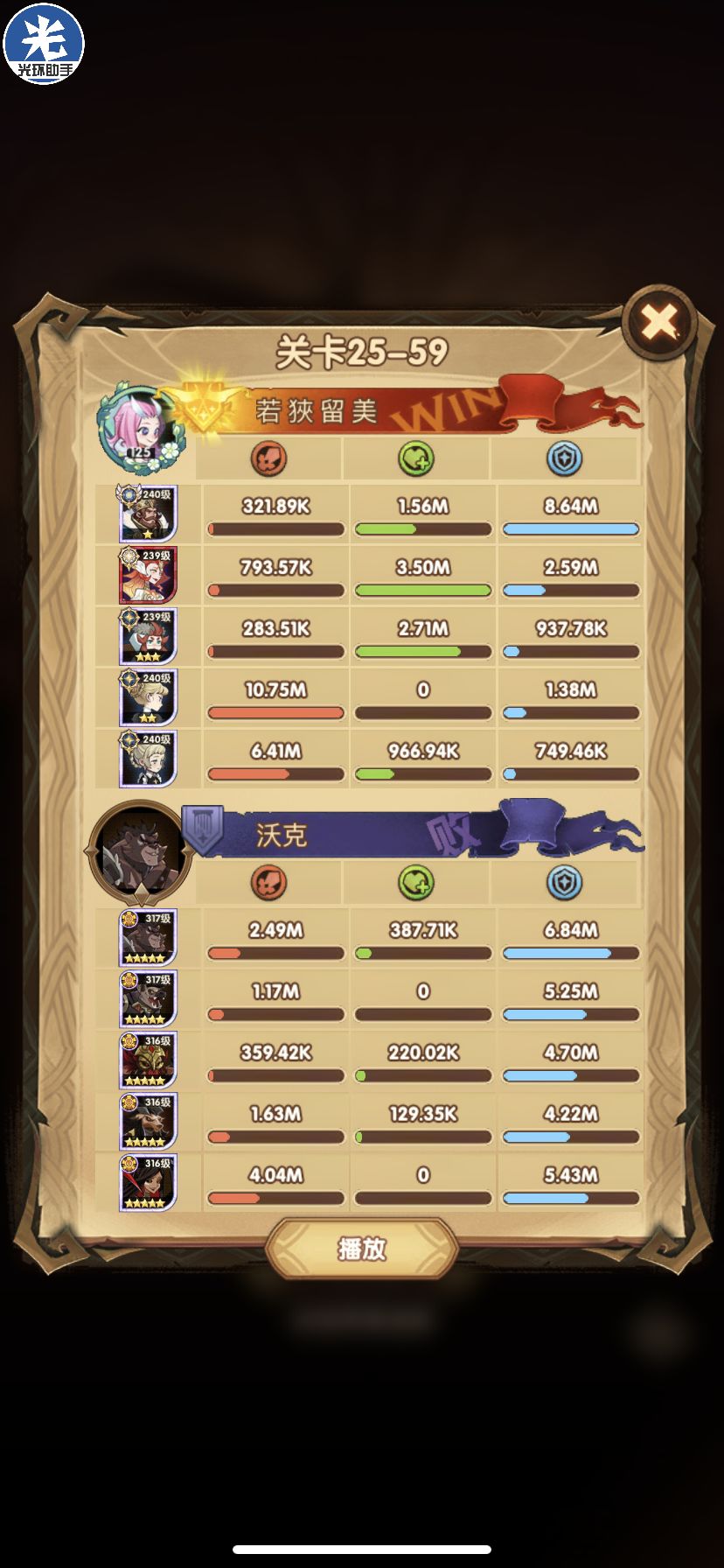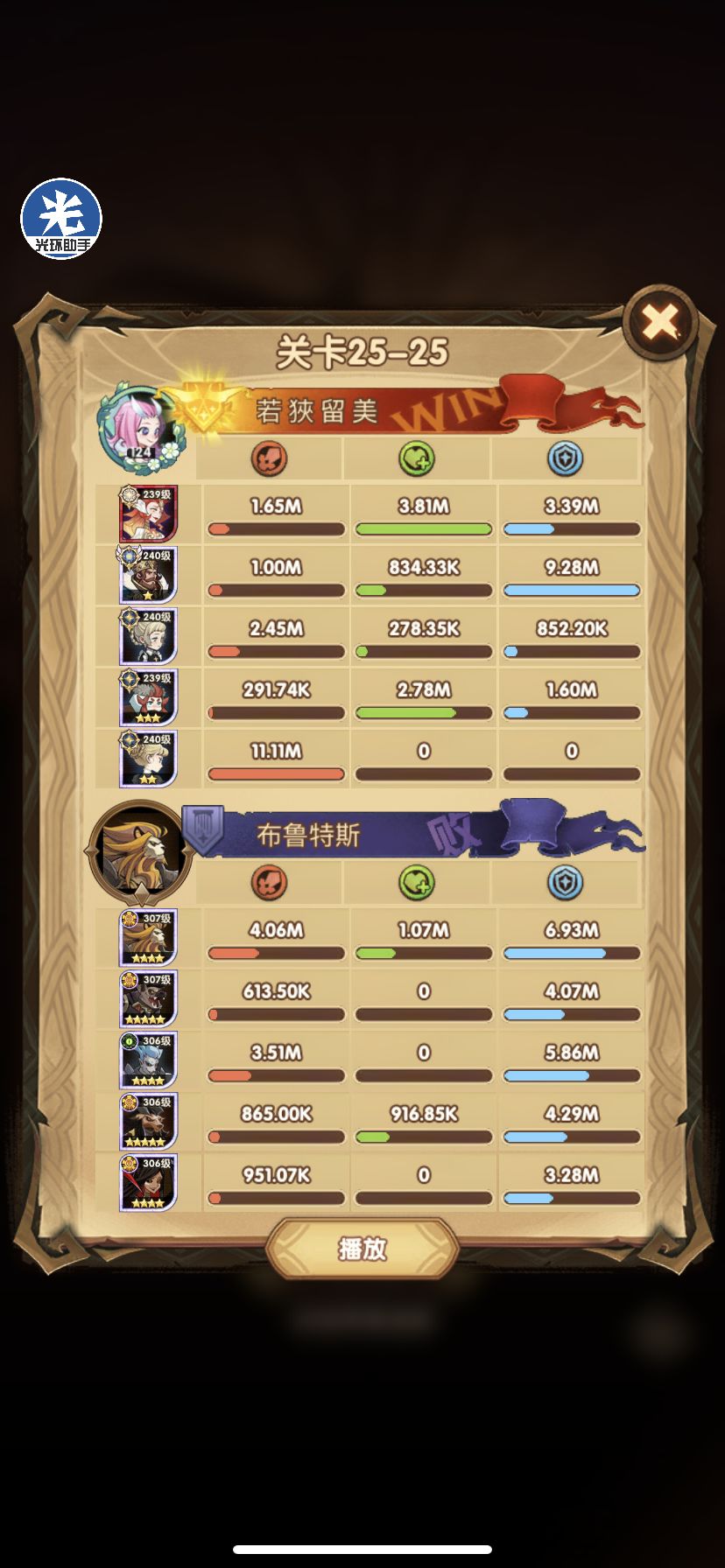 基本上均等239,打算到26章卡瓶子卡装备,佛系占星,为以后两队推图作准备😂