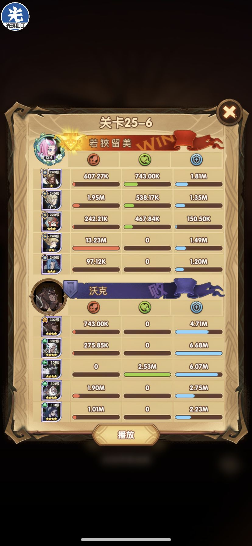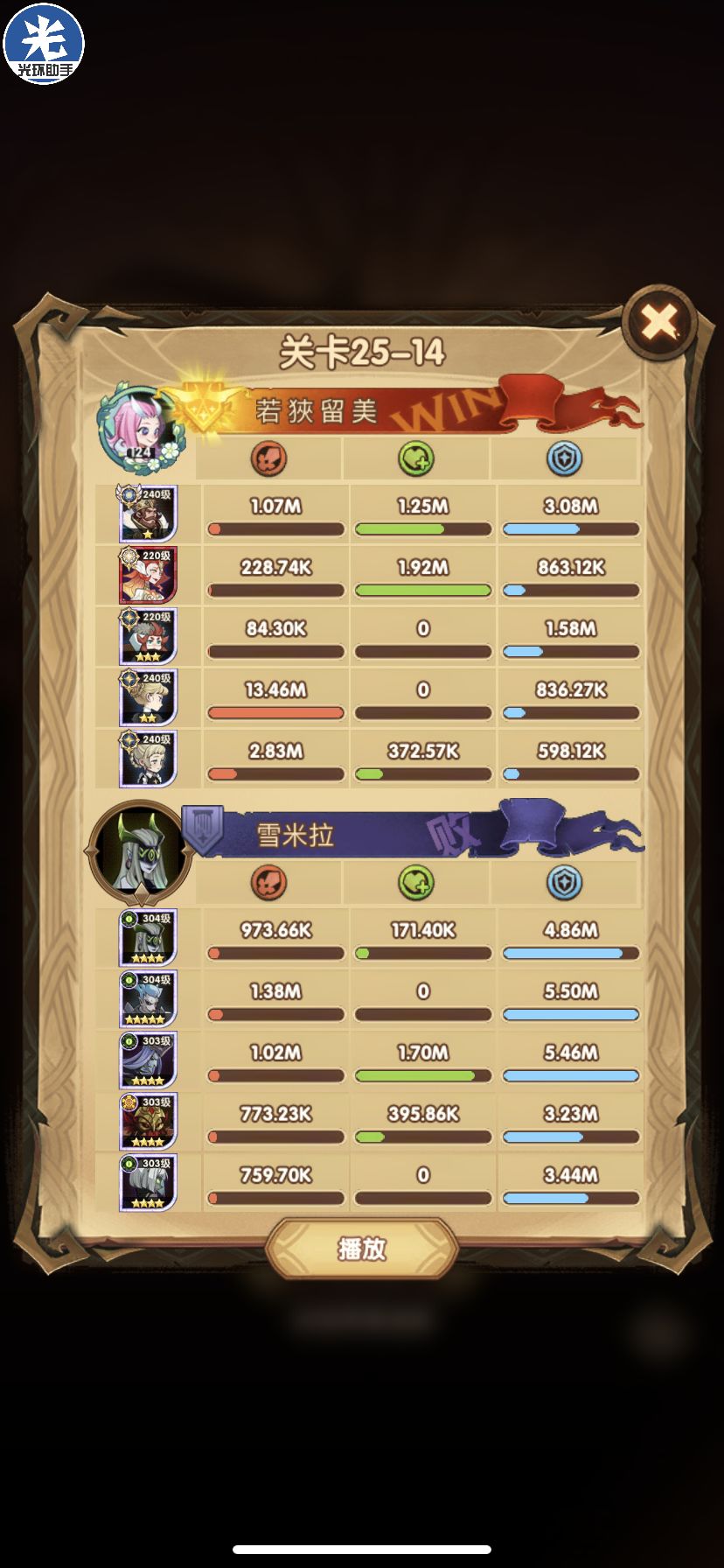 亚瑟对位趴趴熊,就是想试一下亚瑟+30的免控,发现非常有效,趴趴熊拿亚瑟一点办法也没有。大部分人应该都没有+30亚瑟吧,可以试试凤凰、亚瑟、女仆、龙弓、商人。但是因为有大树,血比较厚,可以试试上兔弓加速攻击(参考25-8)。