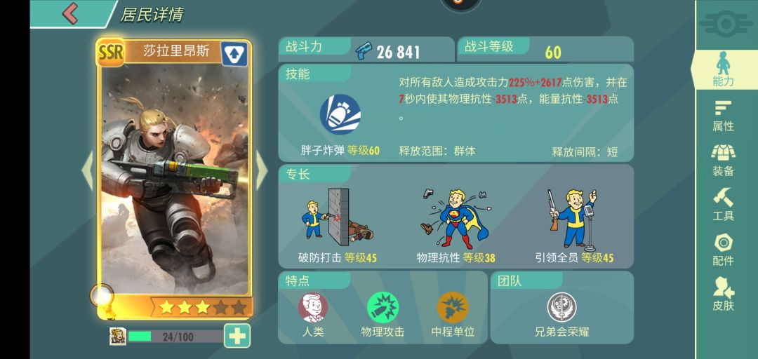 如图所示,沙拉可以提供3256点破甲,这是一个什么概念呢?我们拿通常团队第二肉的尼克为例,在极品监督五星的情况下,物抗3339,能抗2038,沙拉都能把它的双抗变成基本为零的状态,这种对于团队的射手的伤害提升是巨大的,且是其他辅助所做不到的,并且沙拉所提供的破甲与星级无关,所以,三星沙拉就可以提供满额的破甲值,如果你能在竞技场使它升到五星,那就更加厉害了