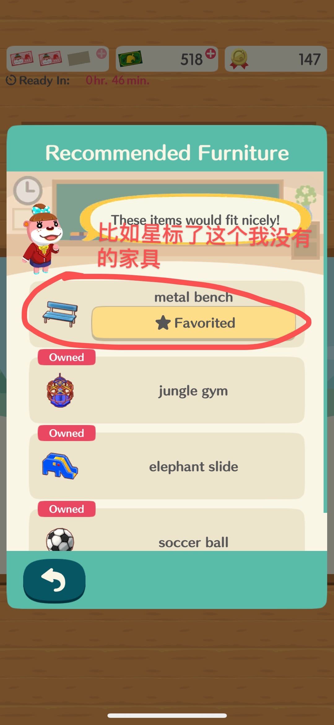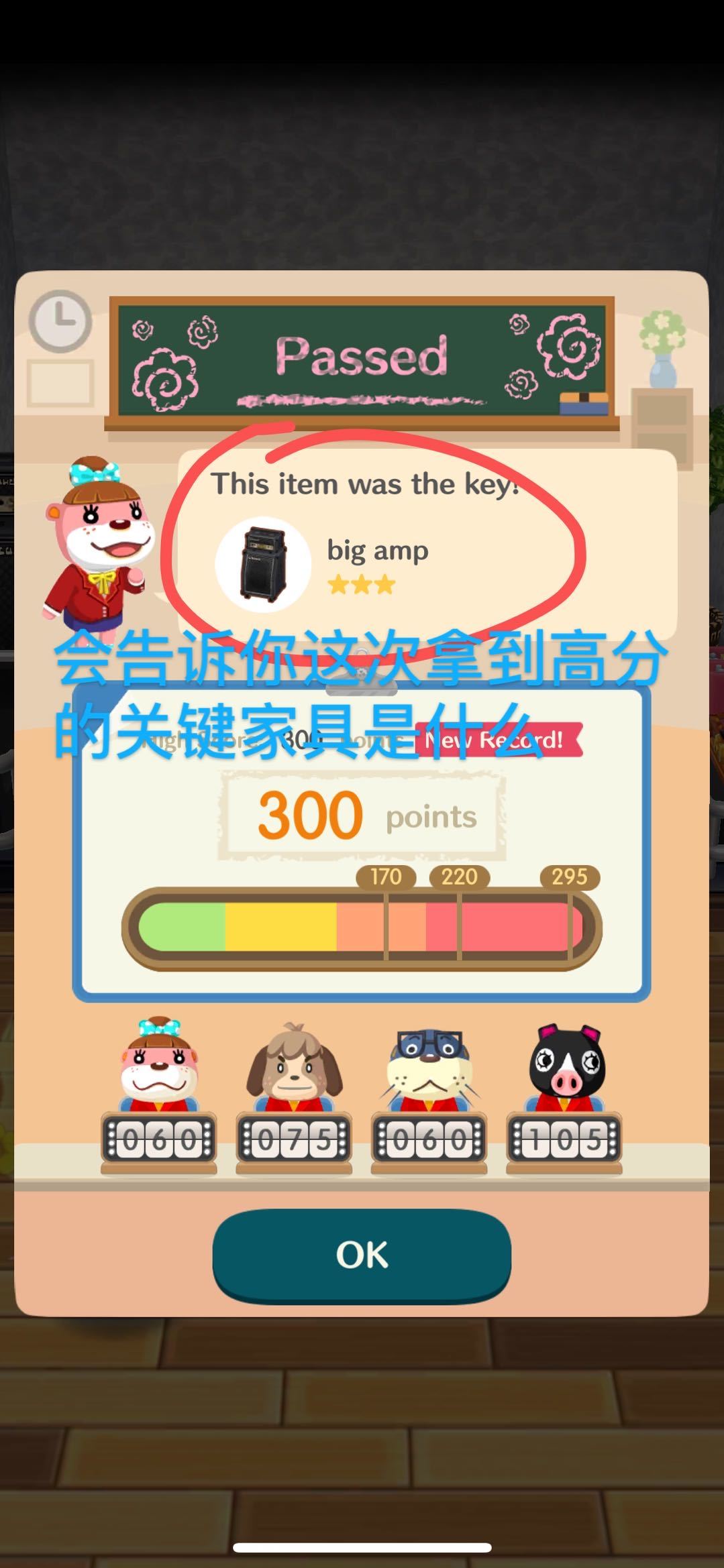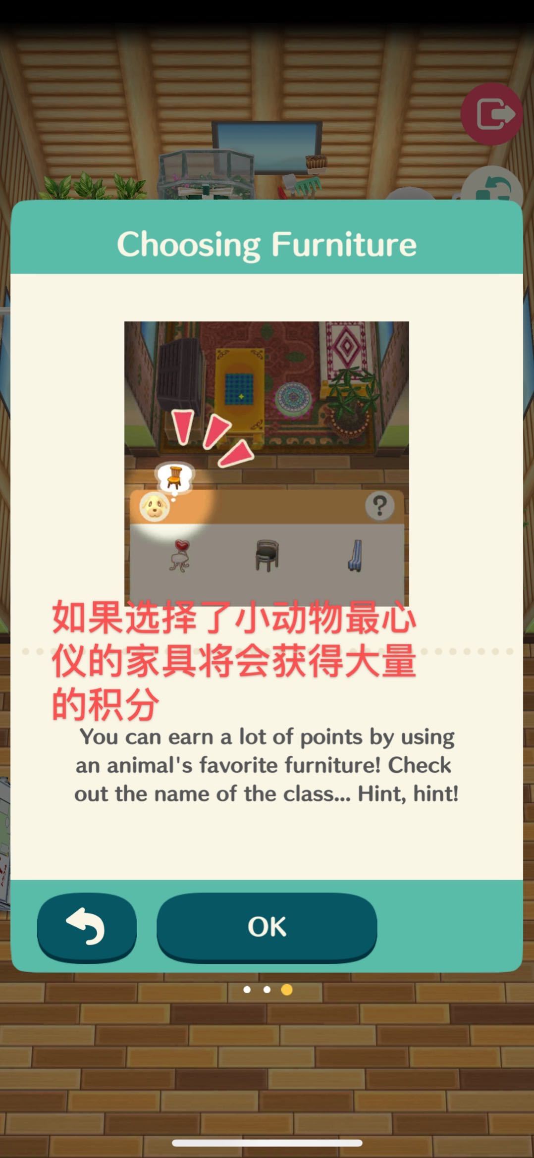 选择小动物最心仪的家具,会获得大量的积分,(这基本就是考试的时候告诉你标准答案 doge)最心仪的家具一般会直接放在第一位