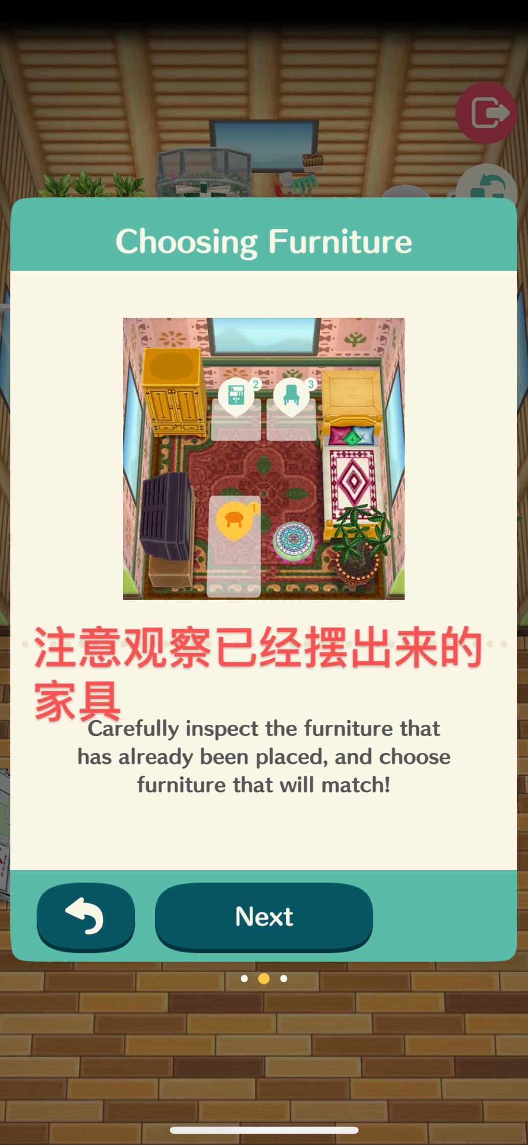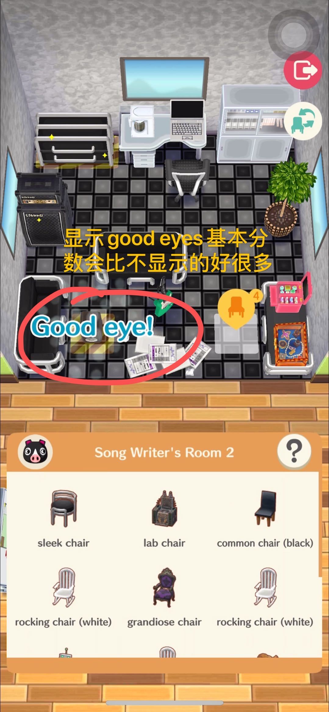 —拿这个课程来举例,可以看到我并没有小动物想要的完美家具,这种情况,我们就可以从这12个家具中选择能获得 good eyes (好眼力)评价的家具