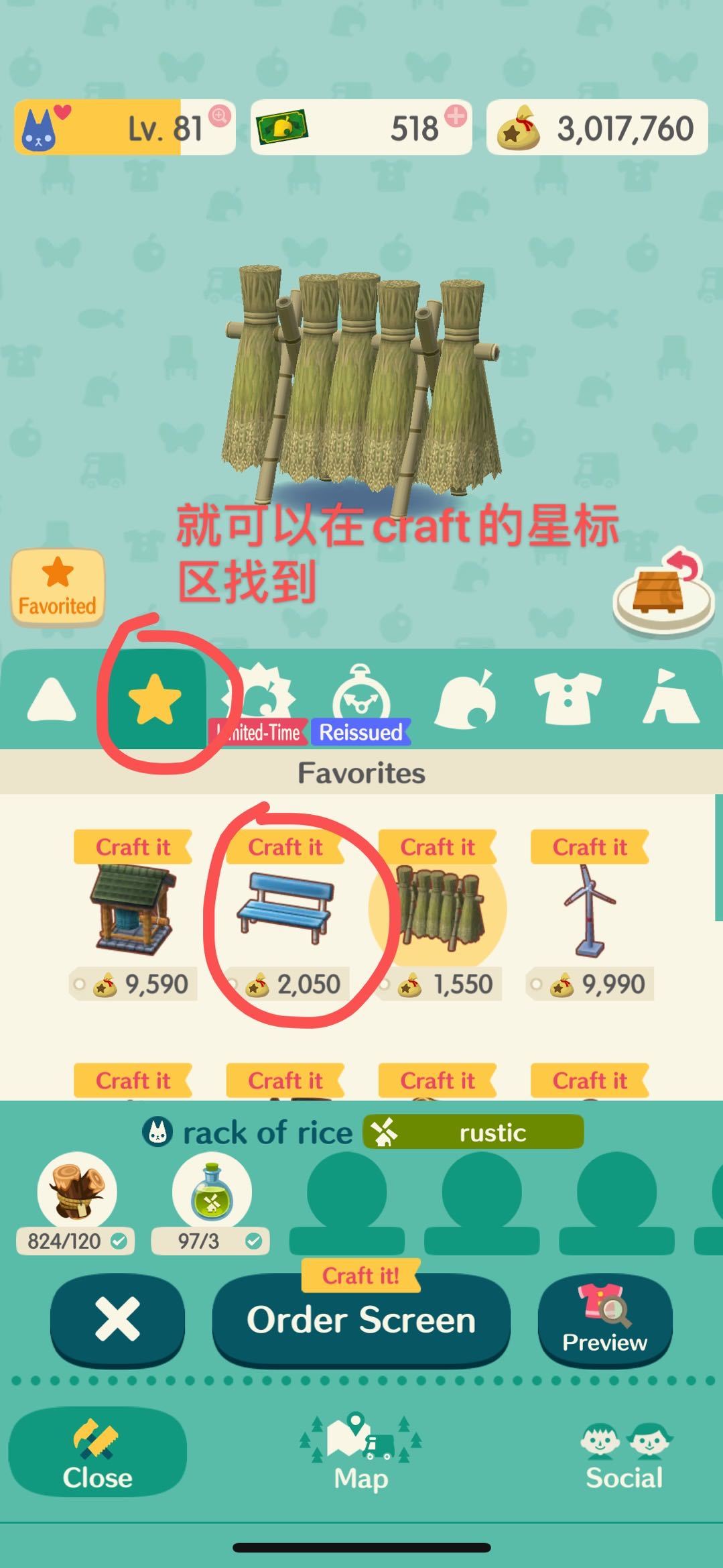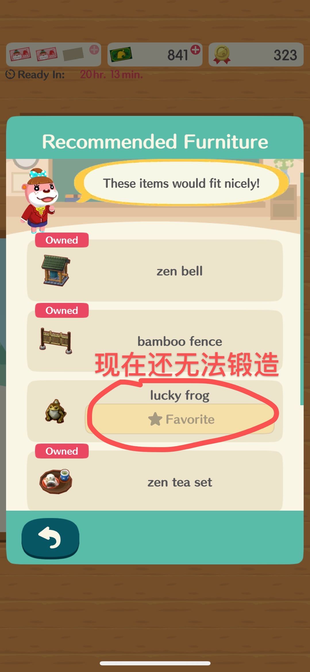 —关于推荐家具,可以看到自己已经拥有和还未拥有的,未拥有的家具有些可以直接锻造,记得点击favorite,这样在craft 的星标处即可看见,但有些家具还能去锻造,便是灰色的且无法点击