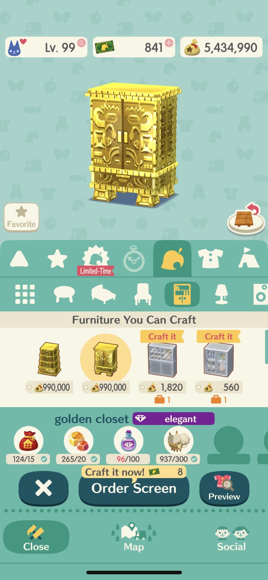 —rank提升会给我们不同的奖励,除了藏宝图和叶票外,会给一种特殊的黄金家具,(金光闪闪!充满奢侈的气息!)