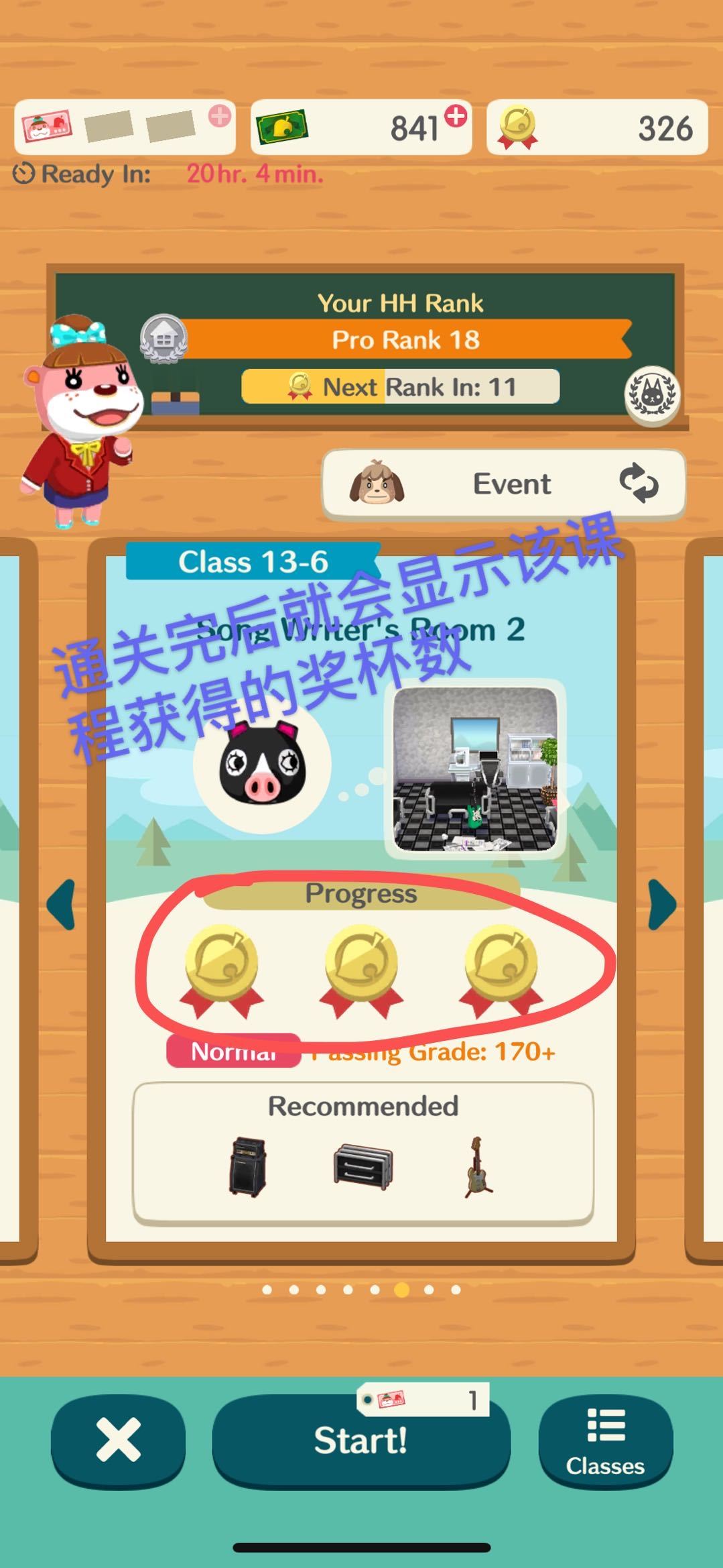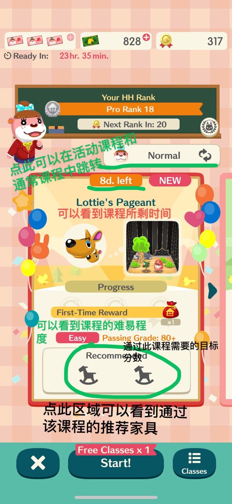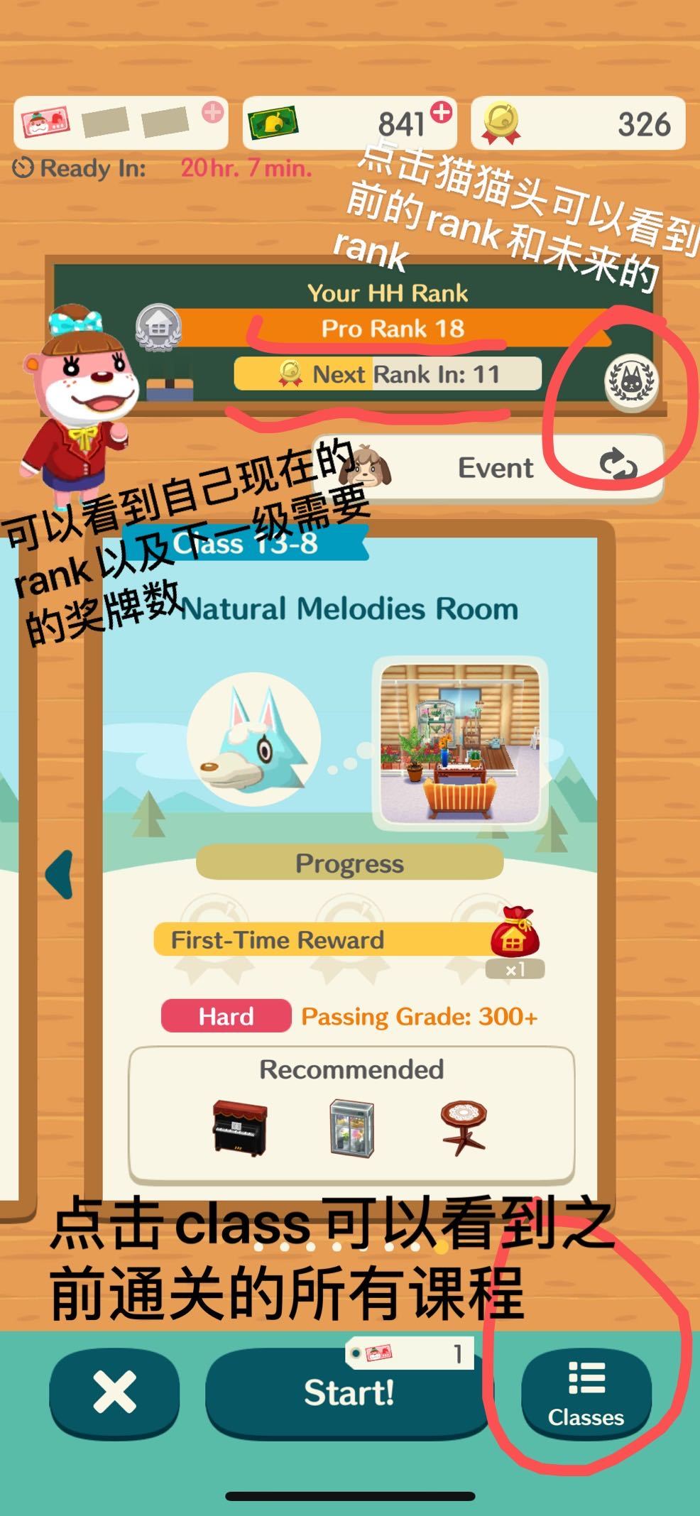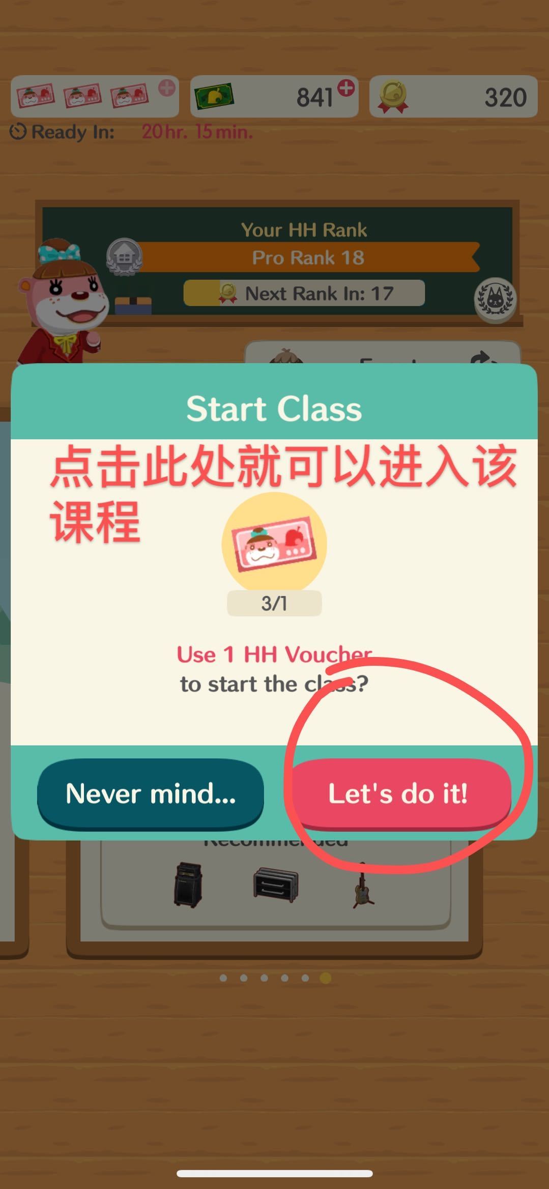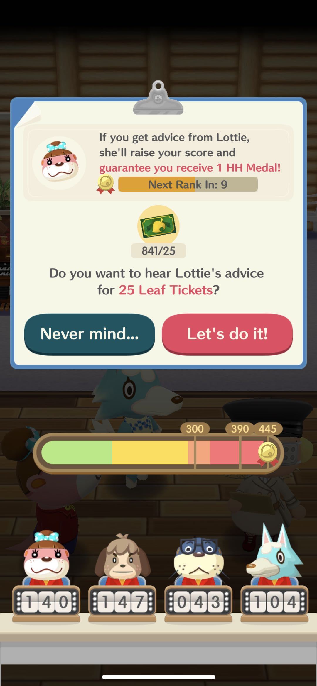 Tips: 当你差一点获得HH 勋章时,洛蒂/Lottie 会给我们提供一些建议,但是需要花费25张叶票, 听取她的建议将为该课程,选择评分最高的项目(即使我们没有这个家具),并保证获得 HH 勋章