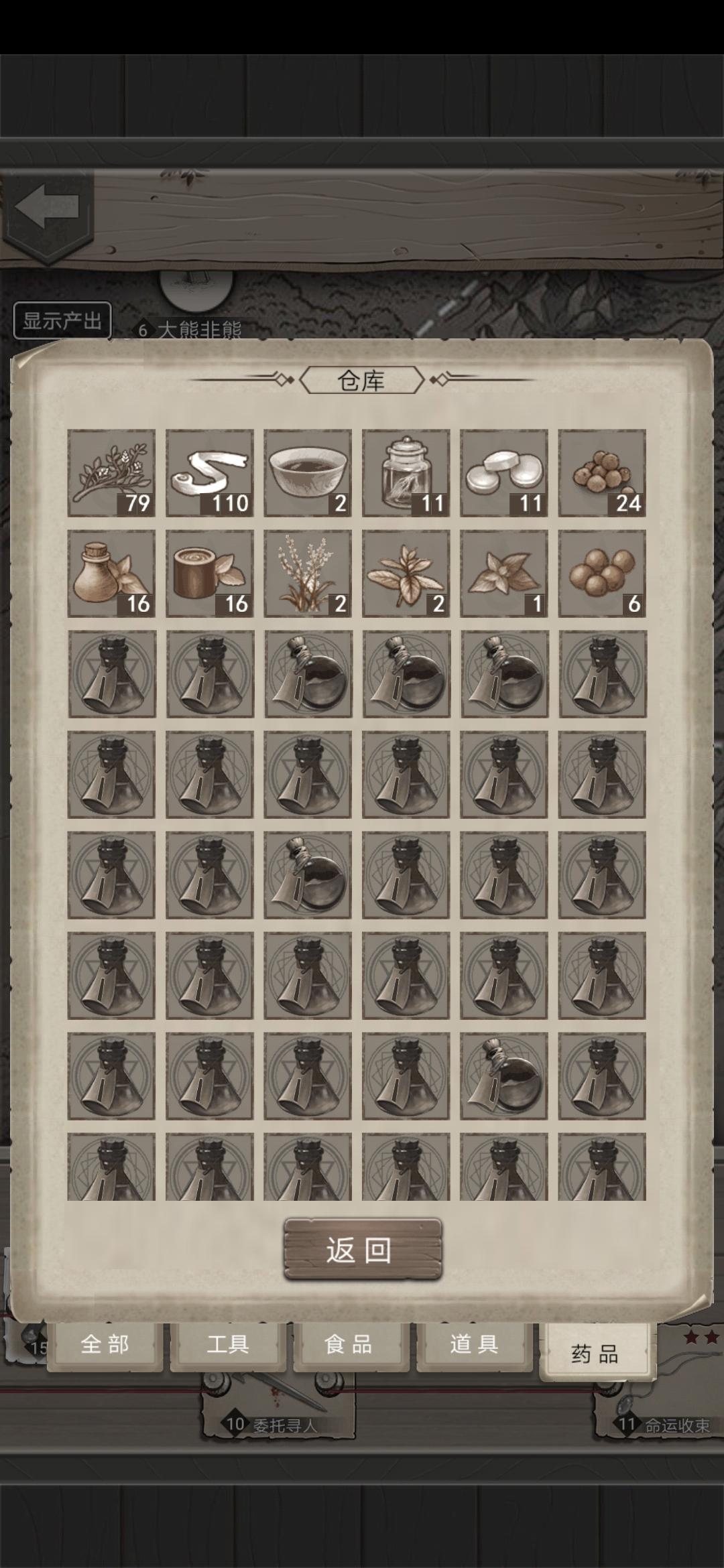 游戏越来越坑了,不怎么想玩了,有想用我号体验后期的可以私我,人物全解锁,主大熊,盾,医生,关卡黄沙英雄懒得打,仓库满级,设施暂时全满,炼金二十几,药剂还有一堆高级