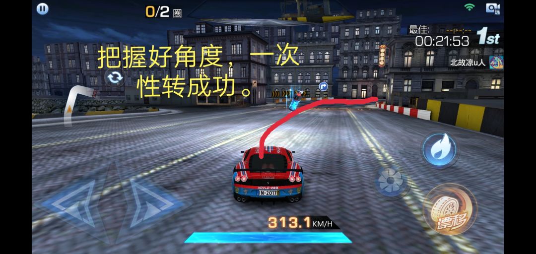 氮气道具的位置 足够满改法拉利全程最高速跑到结束(切记不能漂移!,有的地方转不过去,就多练练)
