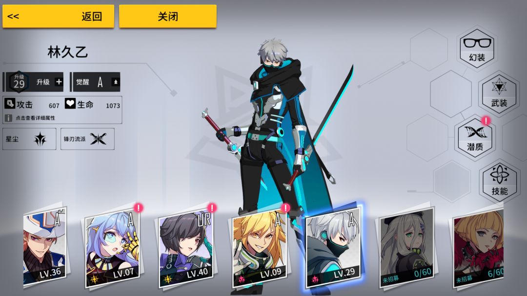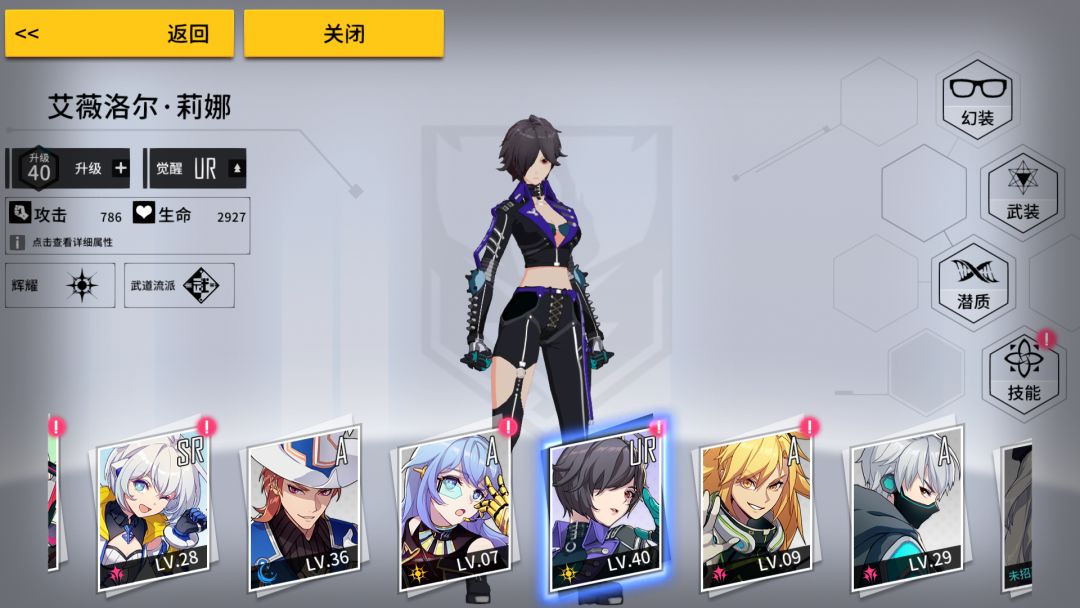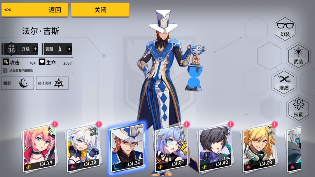 这是我主要养的3个人物,很多人都说丽丽强,但是抽不到啊,有什么用。但是可以用法尔代替,毕竟这游戏属性克制比较严重,唯一平民黯影角色。法尔平A伤害蛮高的,毕竟灼烧效果很强,星辰属性怪感觉血很厚,也挡不住法尔几下平A。丽娜就不谈了,可能我比较欧吧,没办可以用主角替代,不过我没有练,就不说了 。091还是好出的吧,反正比夏米尔好,夏米尔平A慢,技能释放慢,旋转技能伤害高,但你总是打不满,等于没有伤害,毕竟怪物不会等你放完技能在打你,你总要格挡吧,格挡才是这个游戏的主要输出,所以说夏米尔技能很容易被打断,没有丽丽聚怪,夏米尔建议放弃,手感太差。091伤害低,但攻速快,叠虚弱值快,奥义放的就快,打连击有要求,奥义有要求关比较好,同样,女主也是。建议每个属性养一个。