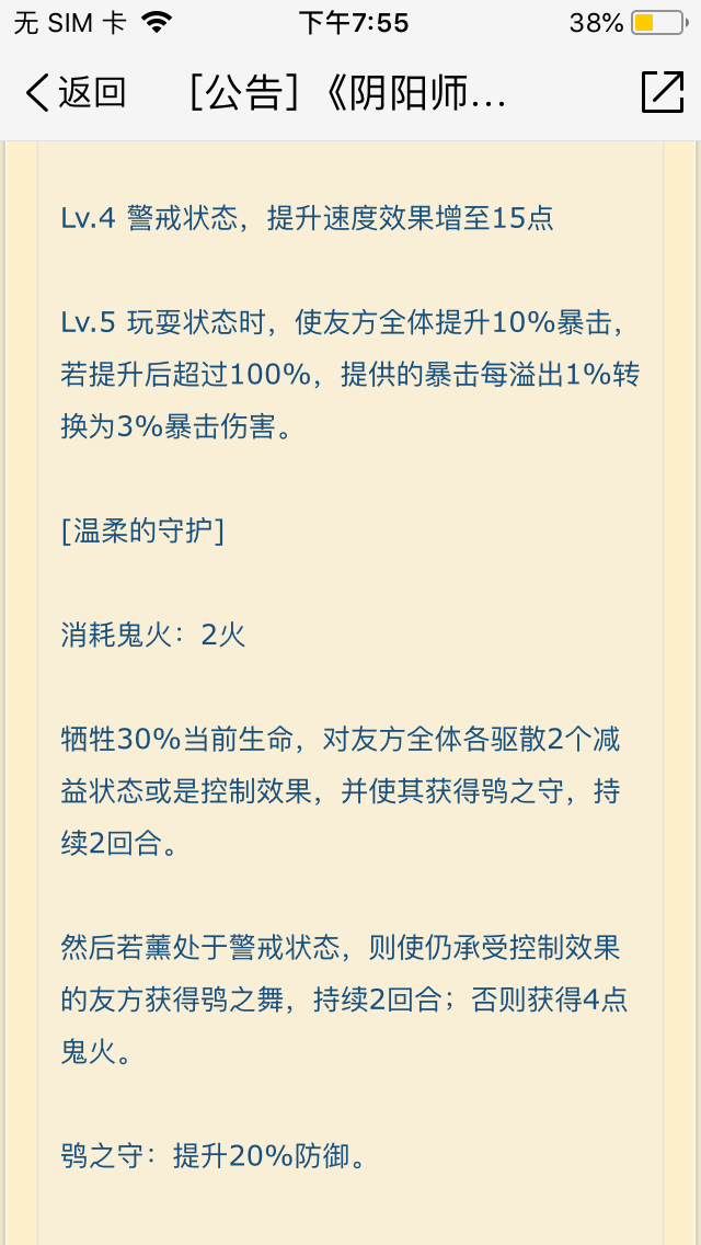 二技能(被动):简单来说,就是两种状态,警惕和玩耍,两种状态互相转换,转换机制与白藏主大招相同,都是无论敌我回合,都会变化,与友放有无负面状态有关,在被动满情况下,只要薰处于玩耍状态,则全体友方加10%暴击,接下来注意了,还没完,增加了这10%暴击后,若友方暴击超过100%,则这10的暴击,每溢出一点,则转换为3%爆伤,简单来说,就是满暴输出增加30%爆伤,当然,这个仅限于薰处于玩耍状态,那么遇上御馔津般若,就是另一回事了。