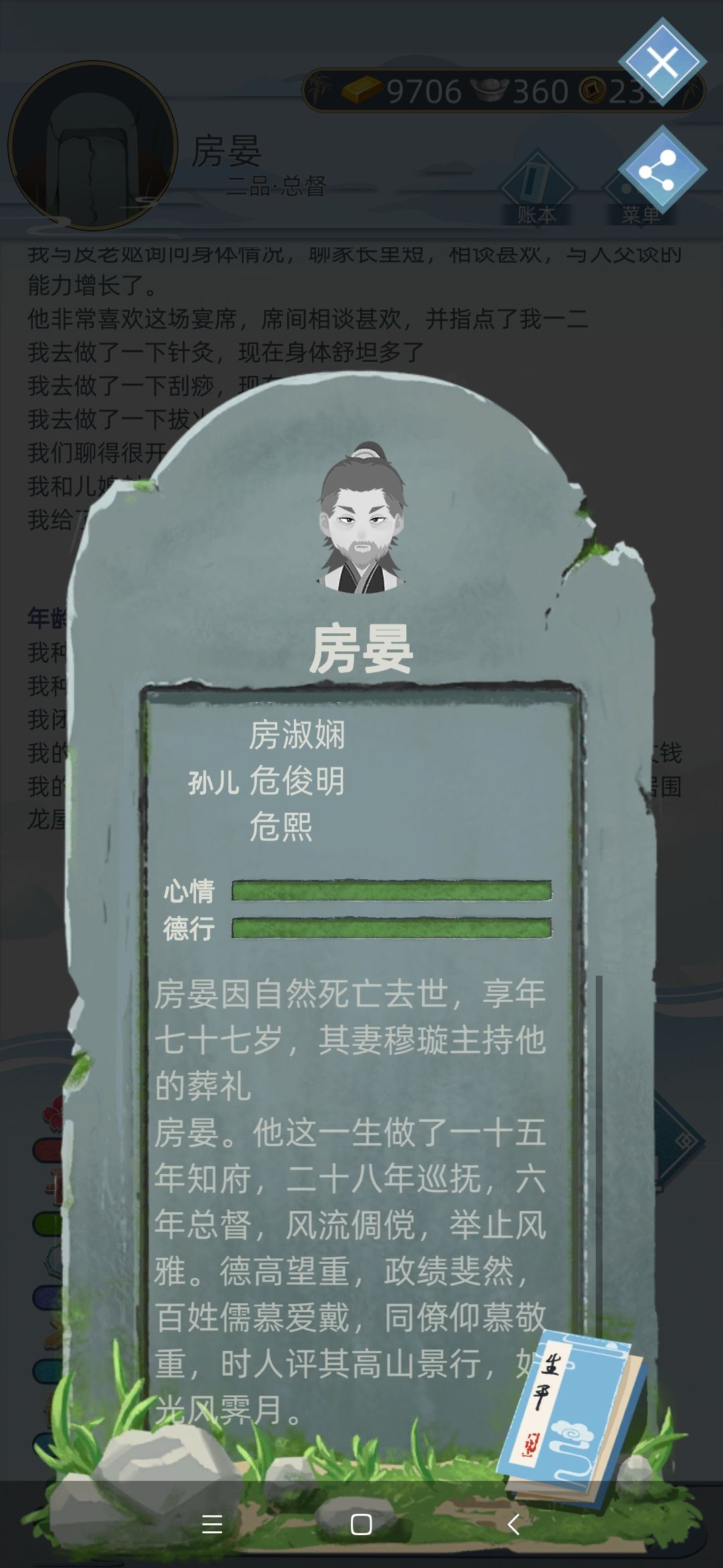 希望自动存档上一年的,不然有时候错点到下一年一块地就是几百上千金的损失。还有传承死前能不能给点征兆,改遗书都来不及。传承错了也无法重选。明天只能再重新肝一个了。