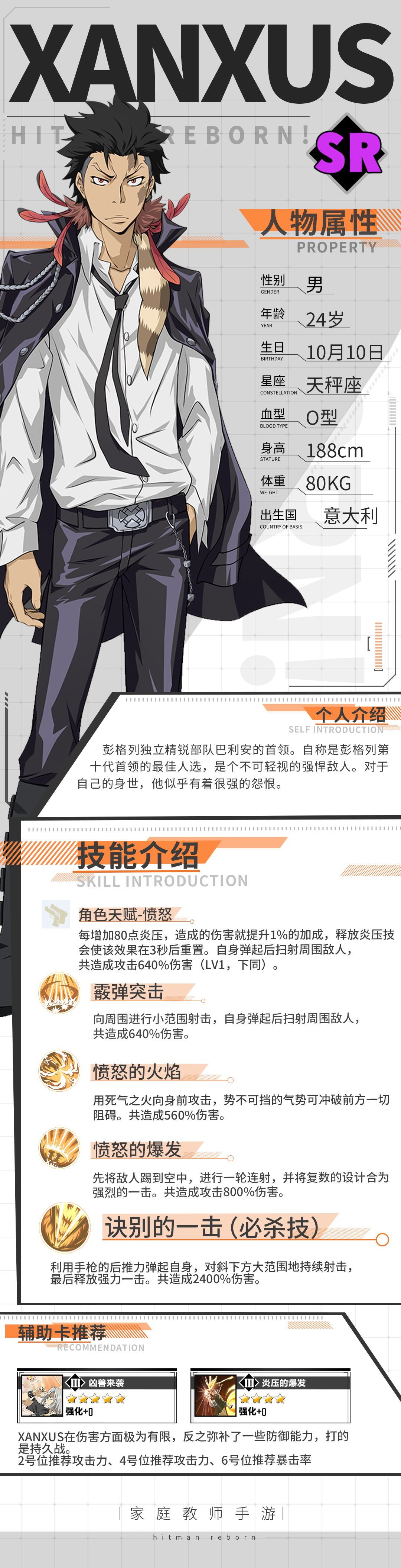大家好,【角色攻略】第二讲来啦!上一期我们已经看过了未来篇阿纲的角色攻略,还没看过的首领快去补个课!说起阿纲,《家庭教师》动画中,最为人津津乐道的指环争夺战就是阿纲与XANXUS之间的对战,跟云小逗一样经常重温动画的小伙伴请举手!那第二期我们就来看看Xanxus的对战资料吧~以及,征集一下《家庭教师》手游中有关XANXUS的对战视频,有惊喜奖励哦!