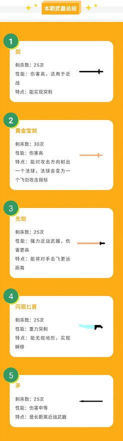 看完以上近战武器的介绍,各位兄dei是不是觉得信息量略大呢~别担心!贴心细心又帅气的小黄老师,早就为各位安排好了课后总结!来来来~快来划重点了!