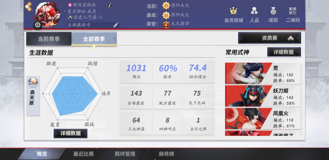 (这里说一点,竹子前期的反野很关键,万年竹这个式神就是前期强,所以反野很重要,但是要量力而行,这里我自己的竹子不是很精通,所以想学反野的建议自己多看多学)