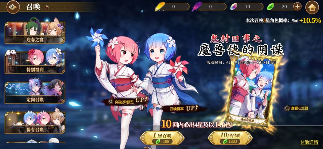 从主界面点进去,可以跳转到复刻卡池,但是不能抽,还好就是透漏了复刻的时间是今年暑假