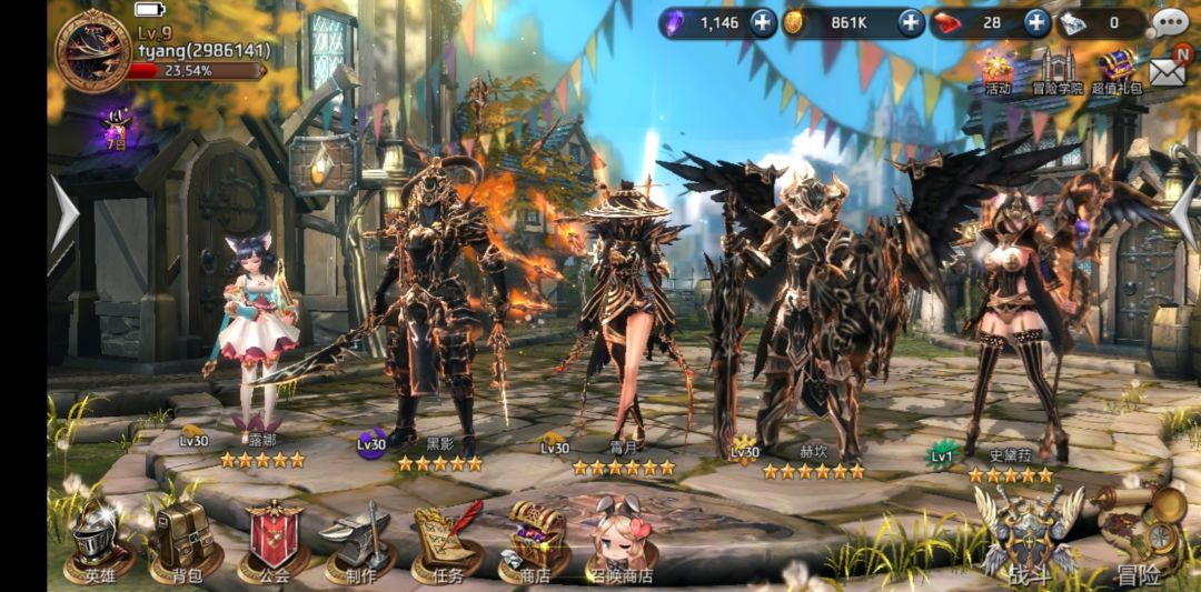 如图,赫坎初始送首抽的6星,同时抽到6蜜卡6希丝和5露娜5汤米,第一个十连出的6霄月,送的执政官券选的黑影,第二个十连出的斯黛拉和拓拔
