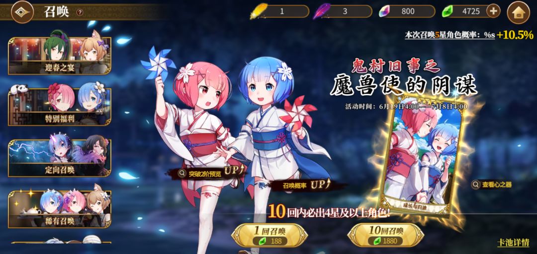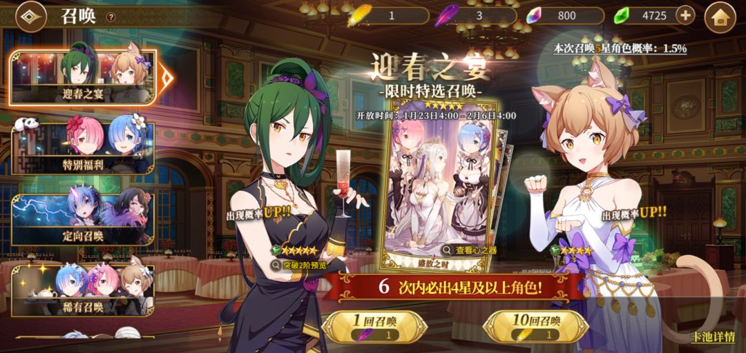 我在召唤里面没有找到幼拉幼蕾的卡池,但主界面活动面板能进入幼拉幼蕾的抽卡池,而且看图右上角,别的卡池都没有加概率,就这个加了,说明这个卡池应该是个bug…吧……可能要删这个池,但没删干净?