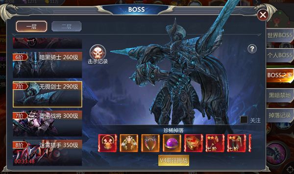 BOSS之家一层V4可以免费进入,二层V5可以免费进入,所以越早提升VIP等级,则可以越早进入到高层,越少人和你抢BOSS哦。不过在VIP等级不足的情况下,也可以消耗钻石/绑钻进入更高层,打更高级装备。