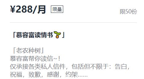 有效时间一天,慕容富将100%读到你的小纸条!具体时间在活动结束后共同商议。
