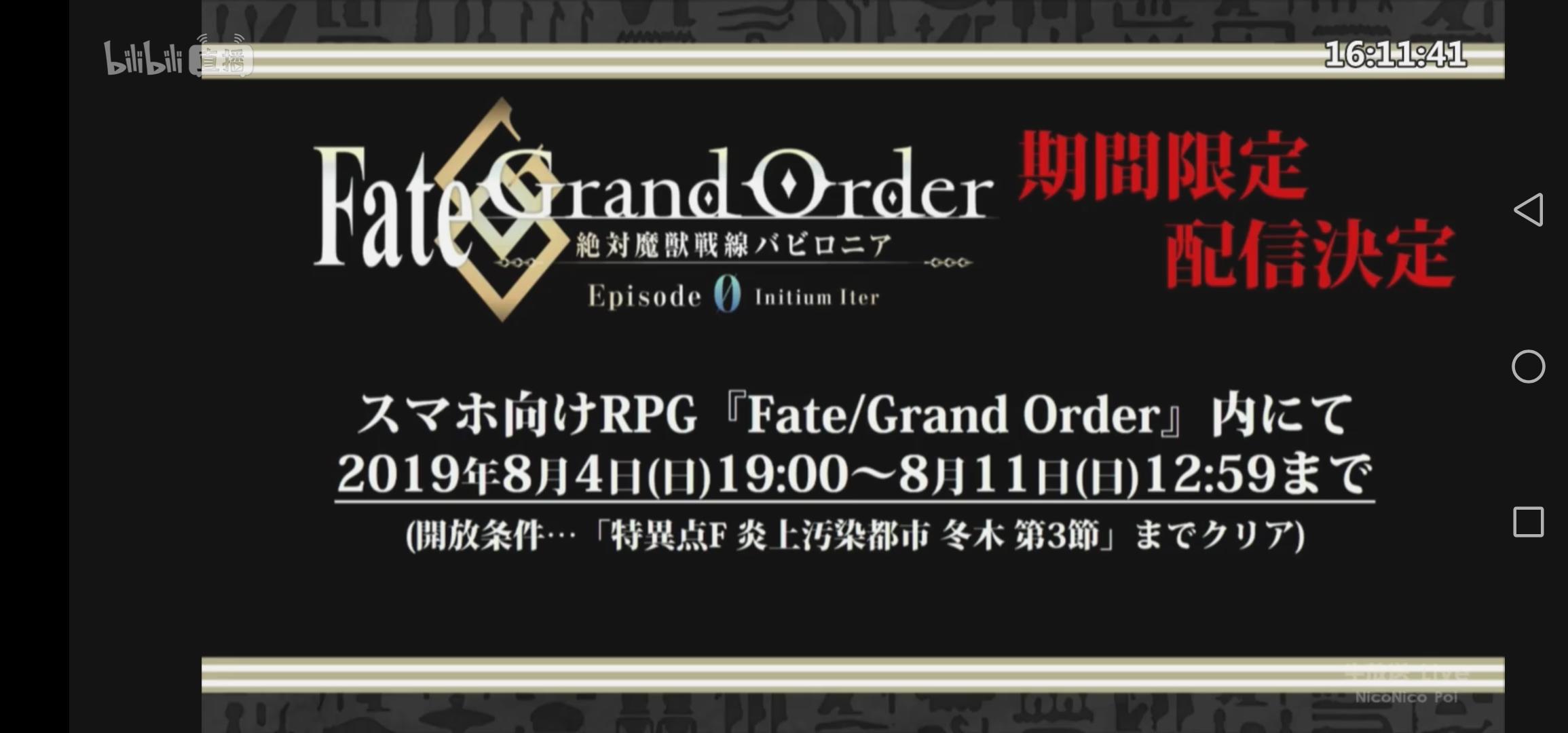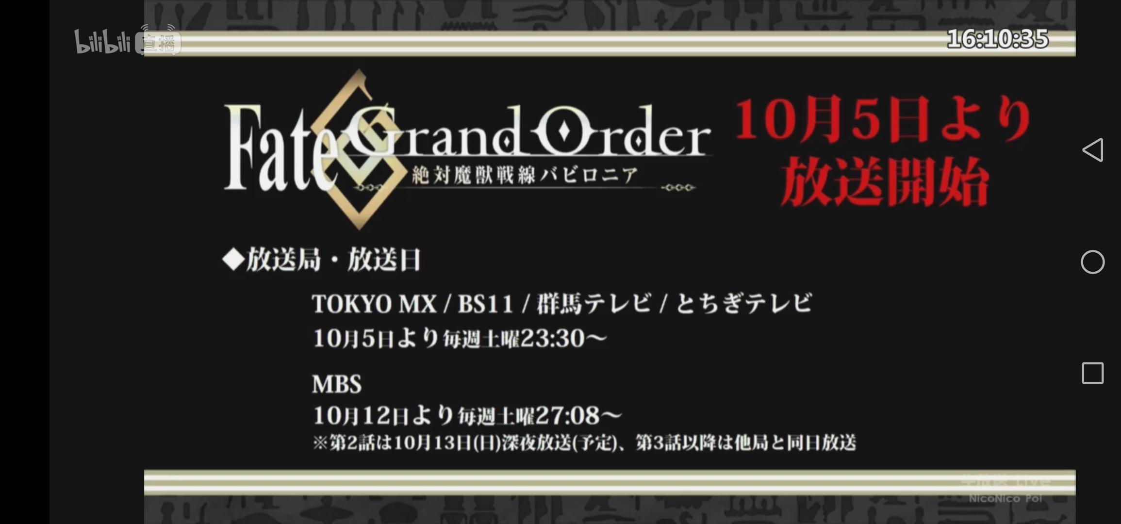 TV动画『Fate/Grand Order -绝对魔兽战线 巴比伦尼亚-』第0话今晚7点于FGO游戏内配信,动画将在10月5日开播!