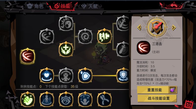 反击,唯一可以点的技能,但打国王不需要使用