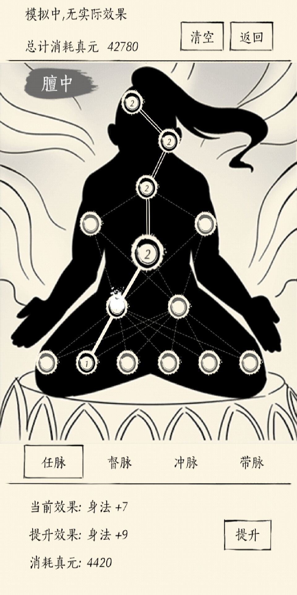 (这个图示是少林如来神掌加点,可以视情况调整分支,但总真元不动)