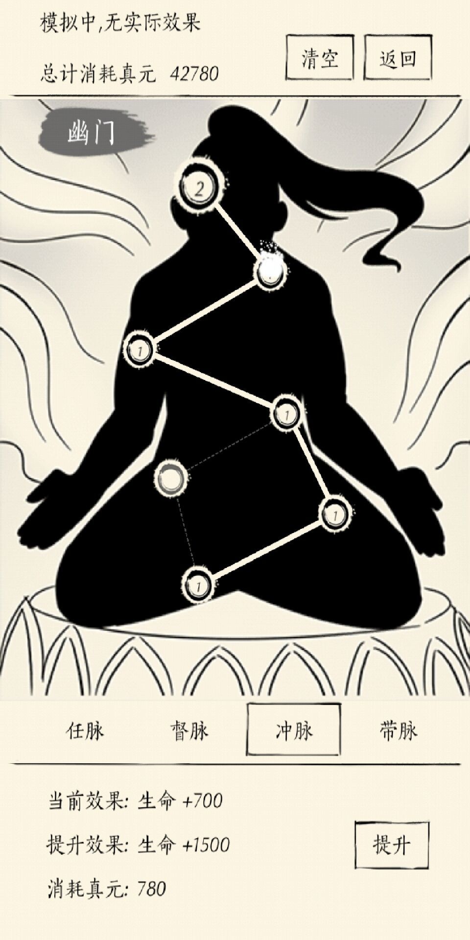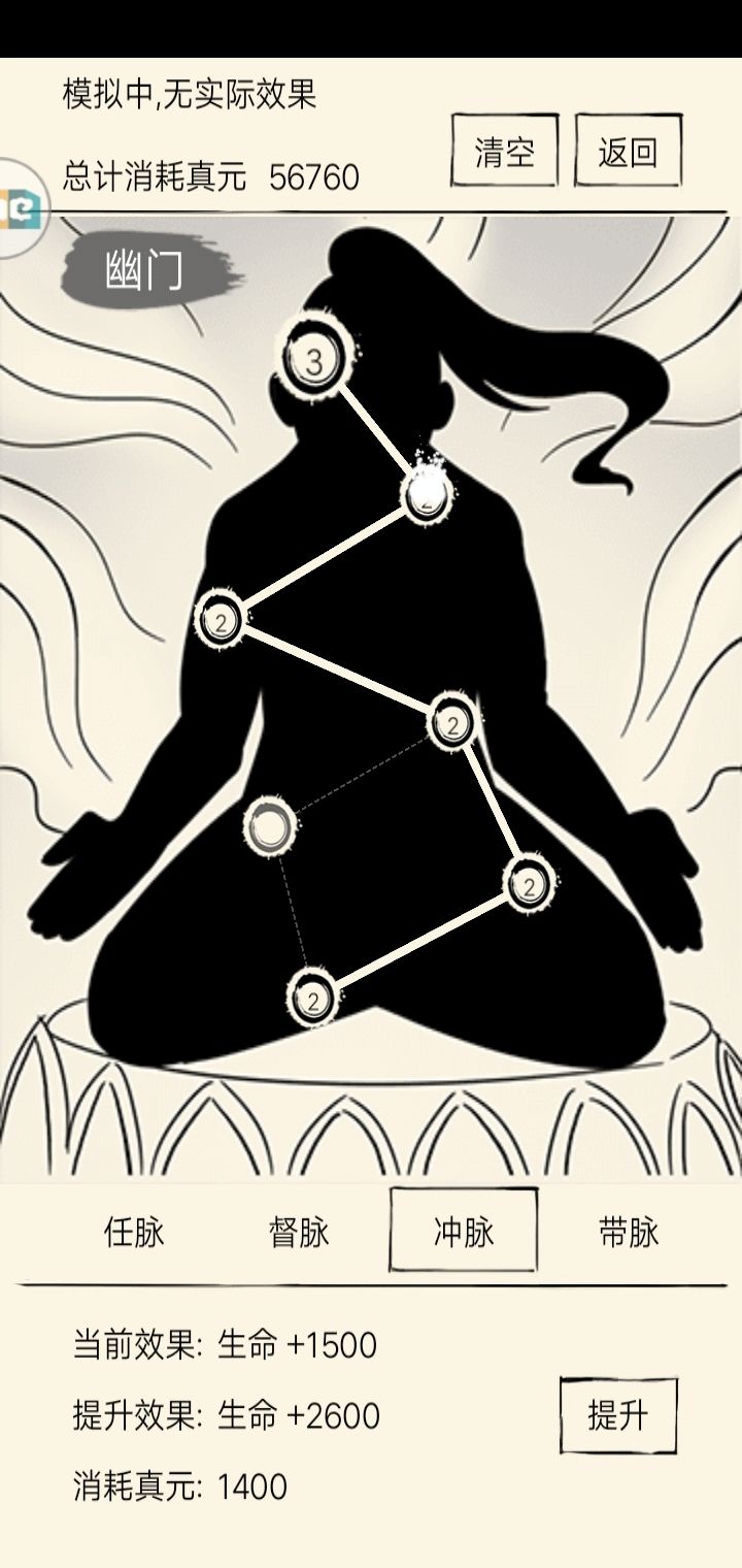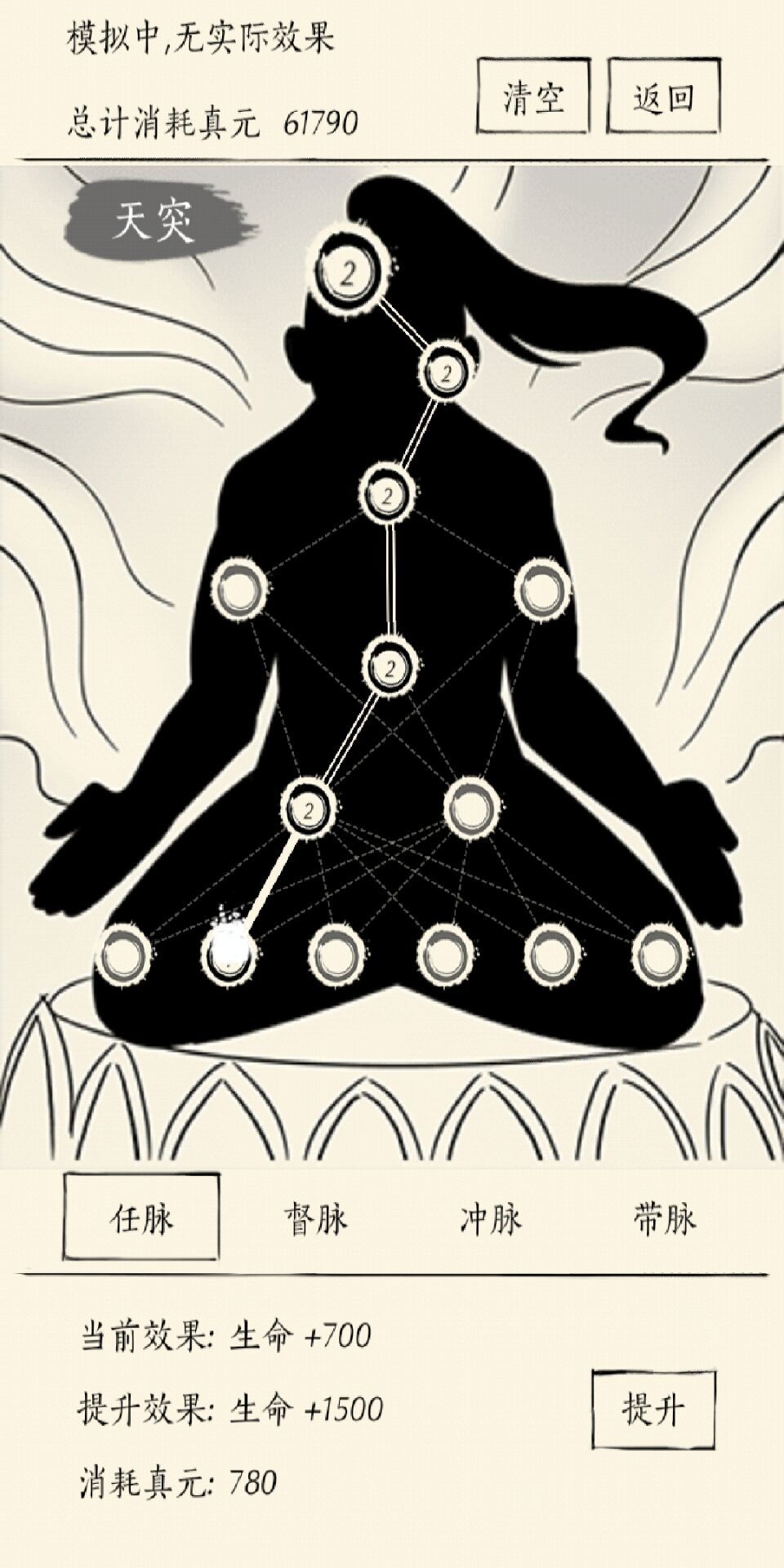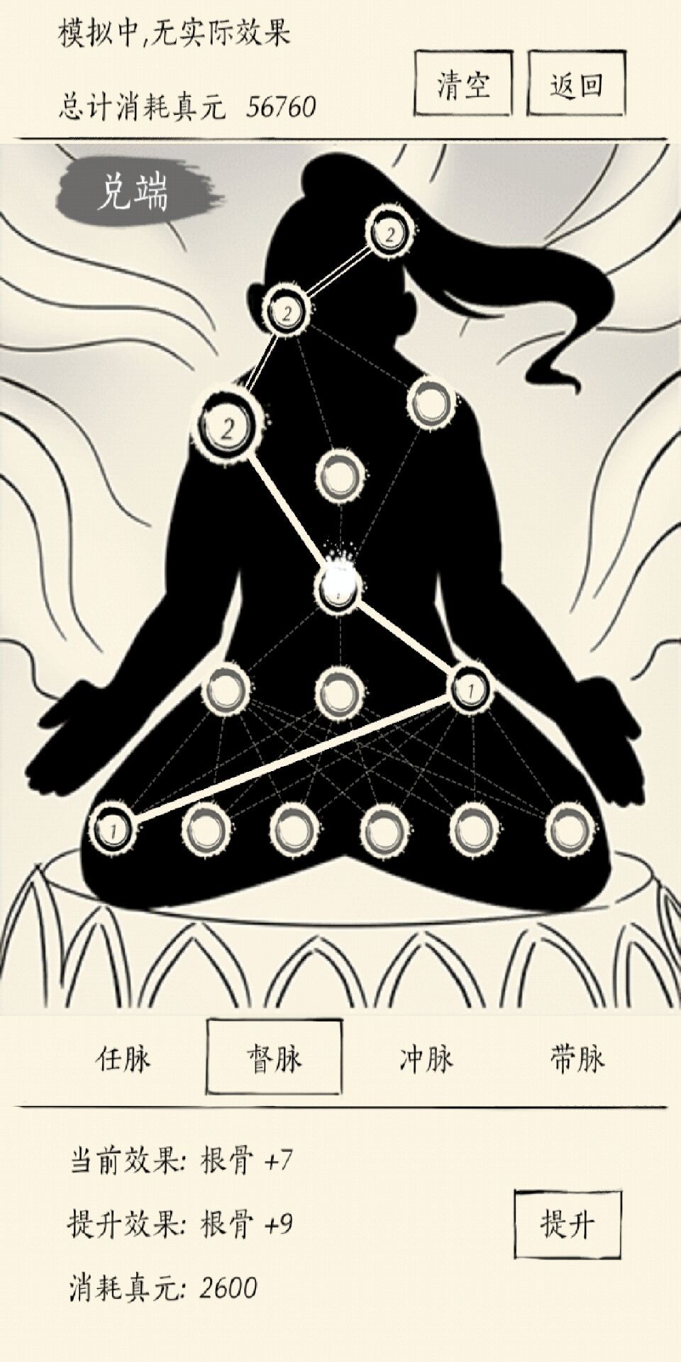 (5.6万和6.1万的差别在于,6.1万多点了2级任脉的破防以及3级冲脉的防御
