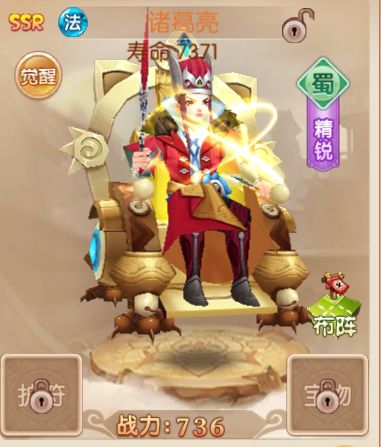 介绍: 蜀国丞相,智慧的化身,发明了诸葛连弩和木牛流马等高科技产物,还曾登坛做法借东风,观天象断生死;有夺天地造化之法、鬼神不测之术!和庞统并称卧龙凤雏。