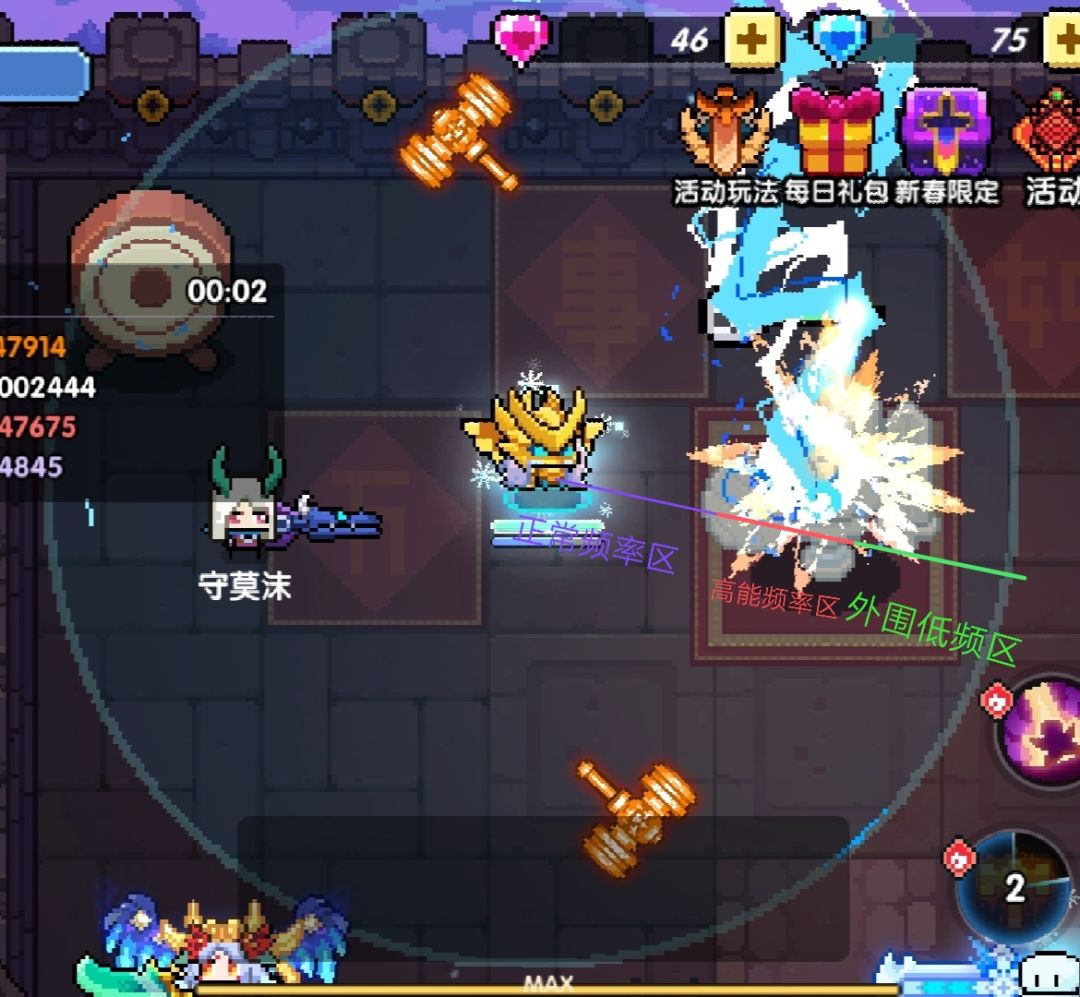 然后我们在回到神罚,上版本神罚频率时快时慢,我无法控制变量。但这版本六件套的神罚我可以控制了,于是我先是开始测试400能量之后神罚频率变化,发现好像挺稳定的,没有上版本神罚明显的动画效果一下密集一下稀疏,但我走起来之后发现频率又开始忽高忽低了。难道和移动速度有关? 于是我立刻备了一双野兽鞋测试,多次测试结果发现和移速没有关系。那到底是怎么回事呢?我突然想到上个版本的神罚虽然频率不稳定,但开头的那几秒爆发倒是稳定的高。但是加大版神罚好像开头几秒也是忽高忽低,这不应该啊,加大应该不会改变动画啊,然后我模仿上个版本的神罚释放了一次,发现开头动画又密集了。然后我深入测试。