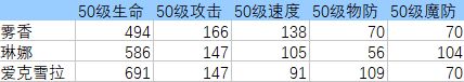 50级基本属性表