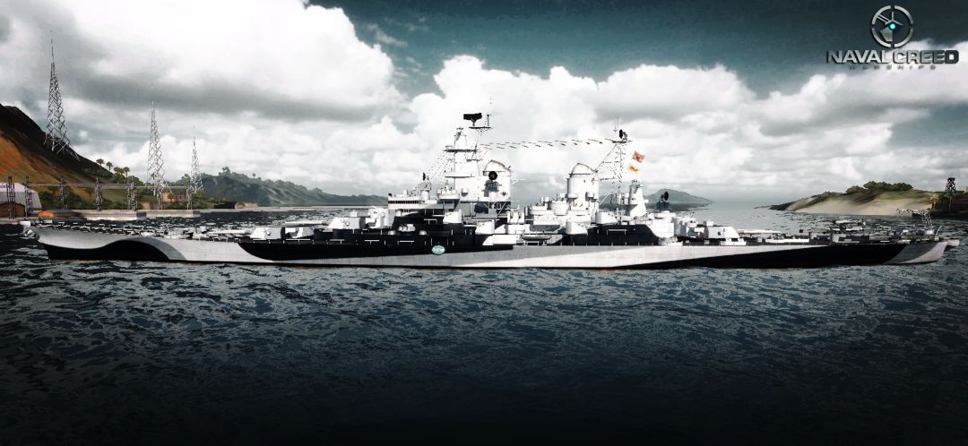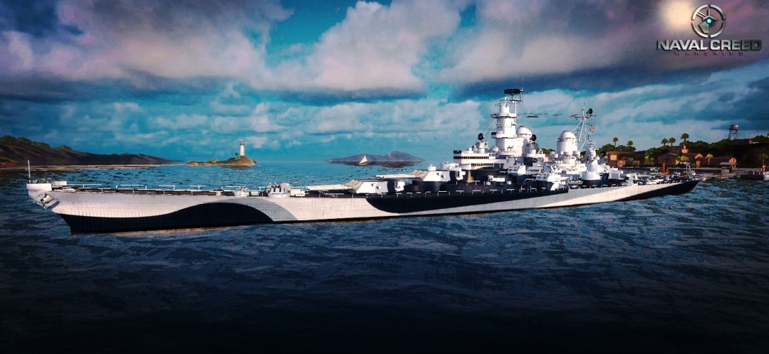 除此之外,密苏里的涂装更是为整艘战舰增色不少,其船体主要采用明暗线条交错的花纹,上层主要采用白色的涂装,整艘船采用了标准的撞色设计,让原本在副炮和高炮群的影响下下变得有些杂乱的战舰,从第一视觉上增加了些许的简洁感、整体感,搭配密苏里现代化的舰桥设计,让整艘战舰变得颇具现代气息。