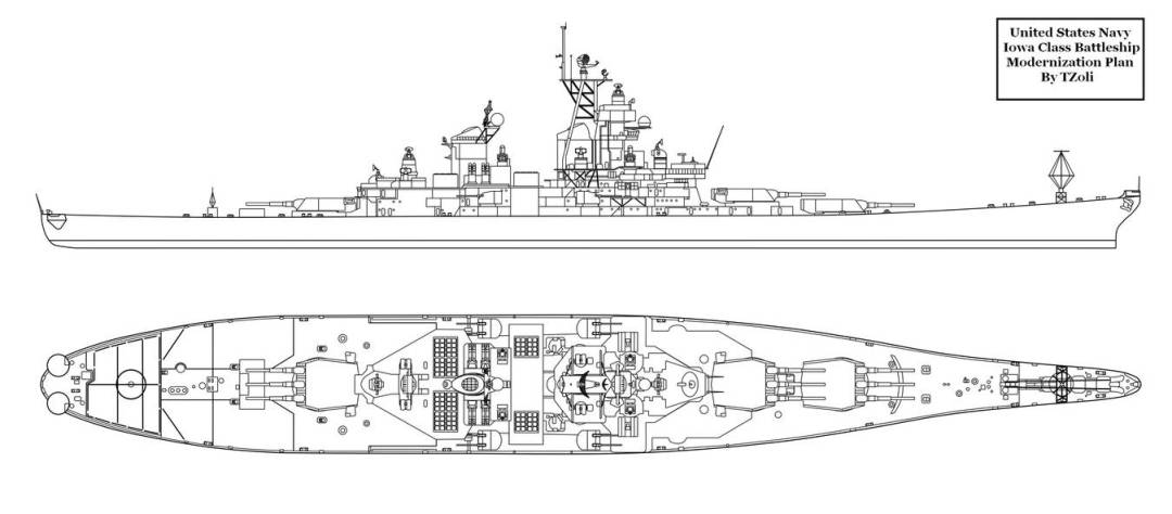 这是外网找到的密苏里现代化改装后的线图,反正都一样看(其实还是条懒狗)