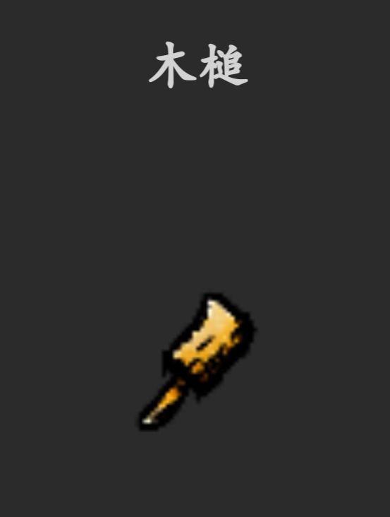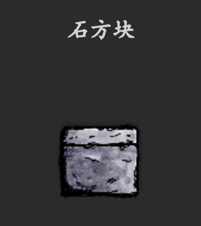 6、拿起其中一块石头,再放上凿子,用木锤敲一下,获得方块石头(另一块石头用同样的方法处理)