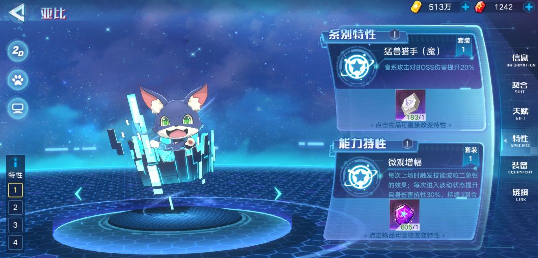 2.满速水月装阴(萌新刚玩资源不多别练,资源充足且需要时再练。装备方面满速更好,爬塔150以上可拉满体,萌新不考虑,平时满速够用) (获取途径:亚比图鉴索引暗系)特性如下,记得两套特性都刷