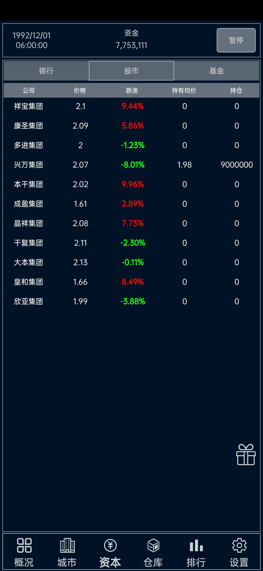 1.股市股价一直在2块钱左右波动