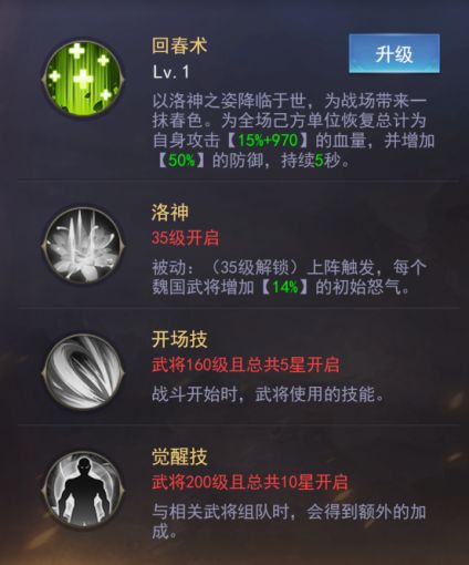 回复血量并增加己方50%的防御力,本来就够肉的了,还来??35级开启被动后上场就多出了14%初始怒气,先人一步放技能拿优势~