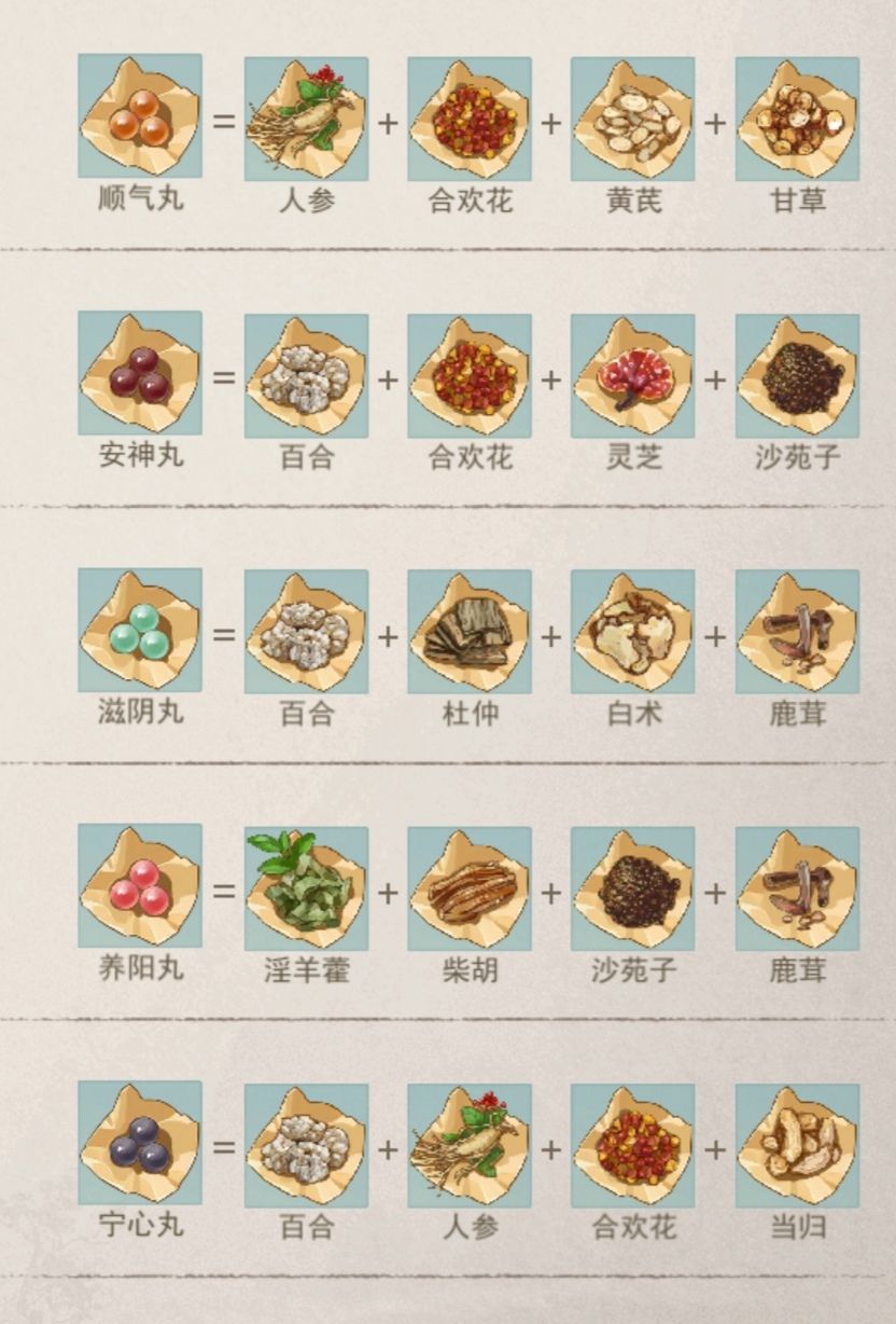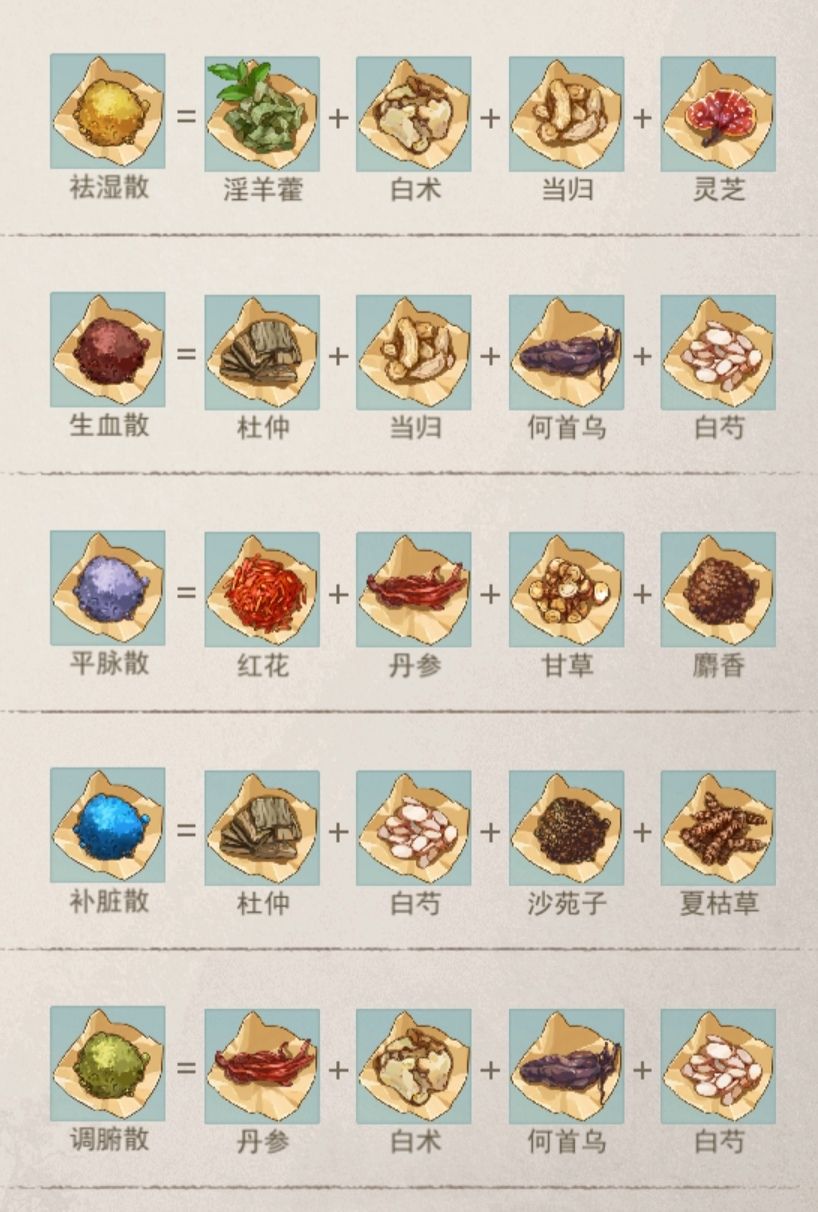 一级炼药药方全图鉴(仅一级)