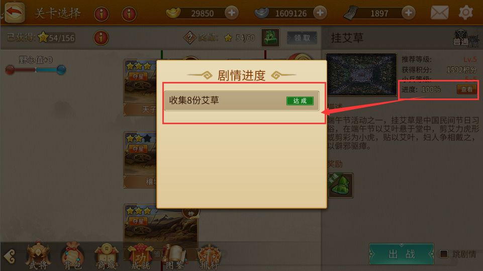 当我们的剧情进度显示达成时,这个挂艾草的活动就表示已经获得了全部奖励。