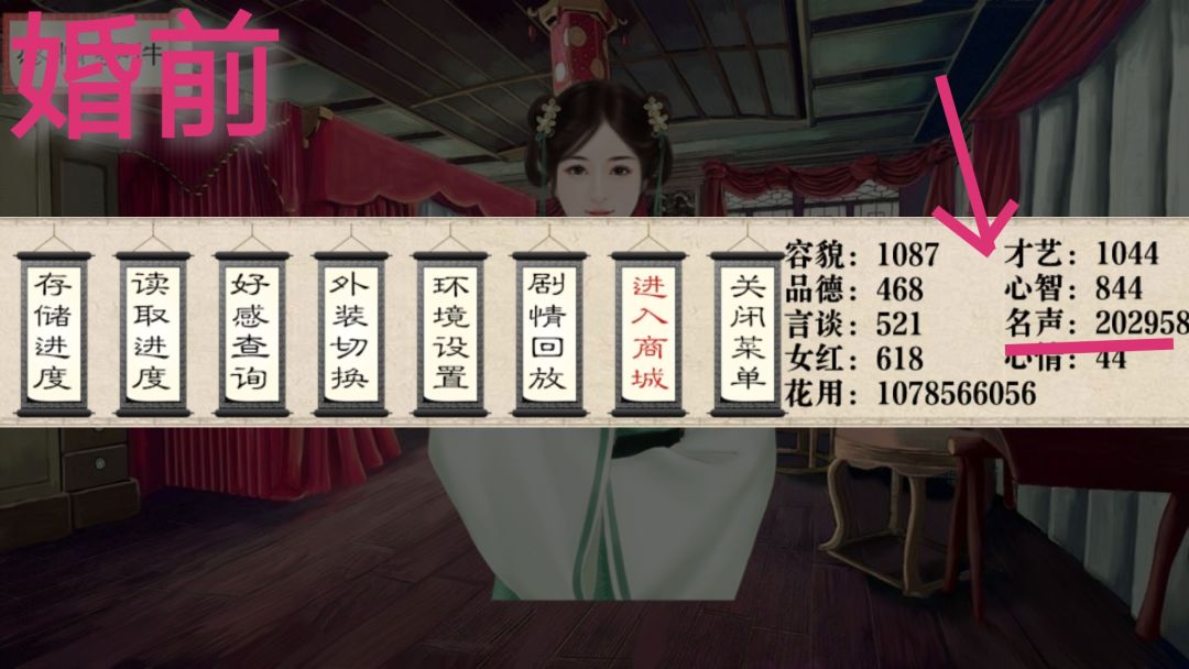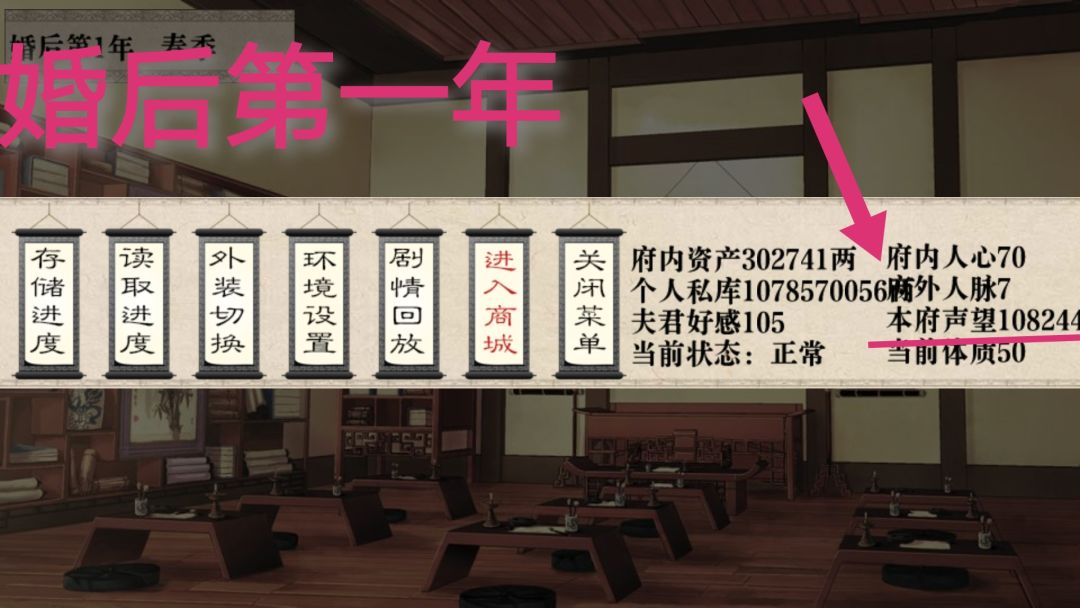婚前卡元宵bug,刷钱和声望。婚后财产充公一半,婚前声望能按比例自动转化为本府声望。