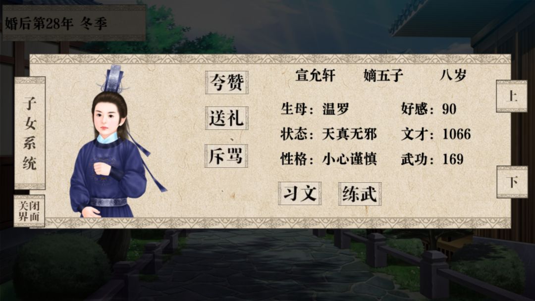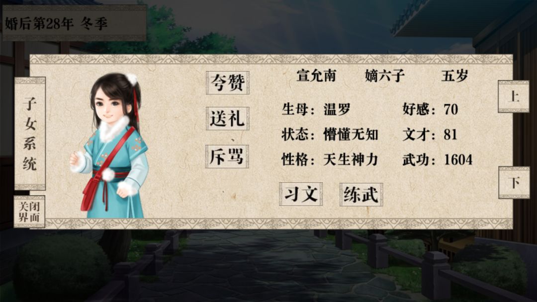 前期专心刷世家好感,中期就能刷满 然后就能快乐养娃了。