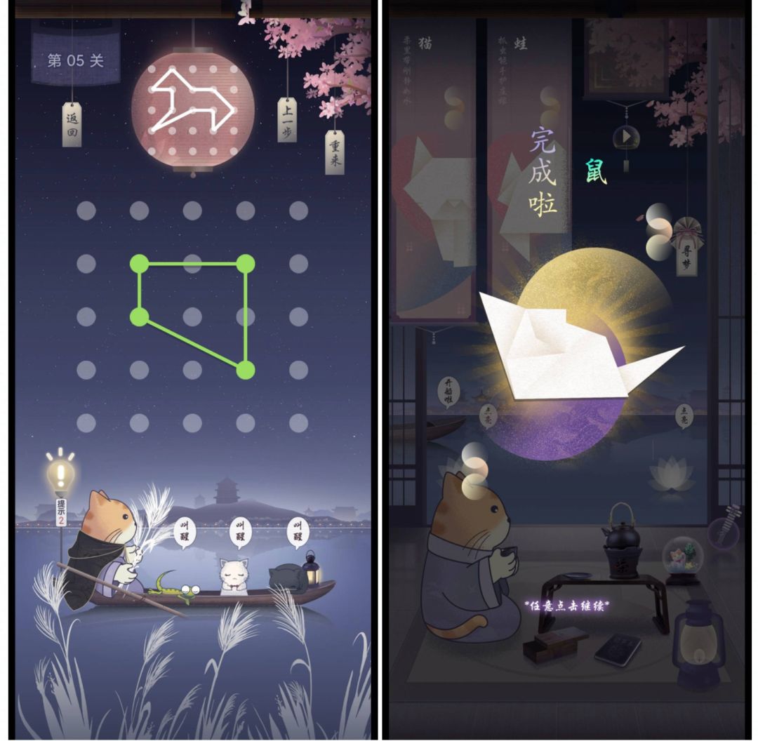 玩这个游戏最大的感受就是祥和,没有紧张刺激的内容,简简单单的折纸,猜灯谜,连线小马。不用在意其他,在虚度中享受它给你带来的平静。