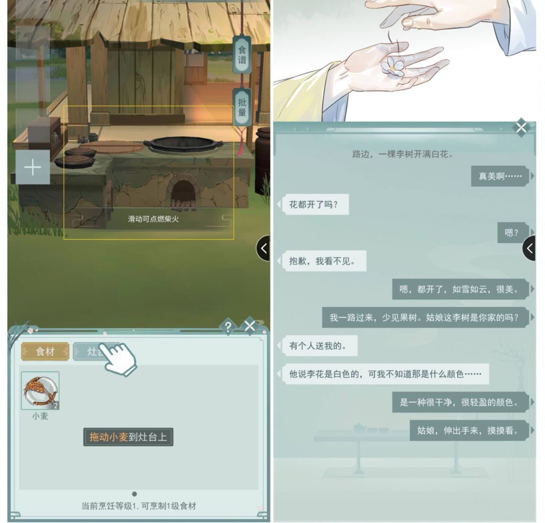 酿酒喂马,种田养花,莫名就有采菊东篱下,悠然见南山的那种闲情。管理好自己的一亩三分地后,就可以去闯荡江湖啦,只要将食物制作好放入行囊,主人公会在你没注意的时候背起包裹出门游历一圈,这种放养形式还挺让我惊喜的,玩游戏完全没有强行盯随的压力~