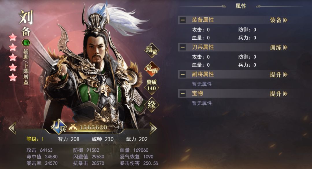 刘备作为刀兵其属性更像是一个辅助,前期通过技能给友方增加生命上限和提供护盾和攻击力,35级后解锁给自己蜀国武将增加攻击力和暴击率,帮助蜀国武将提供一个质的飞跃~