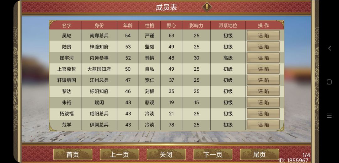 PS:普及一个小技巧,前期如果有近臣,可以有针对地诬陷仕龄长道德低的大臣。