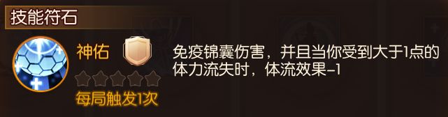 修改后——免疫锦囊伤害,并且当你受到大于1点的体力流失时,体流效果-1。