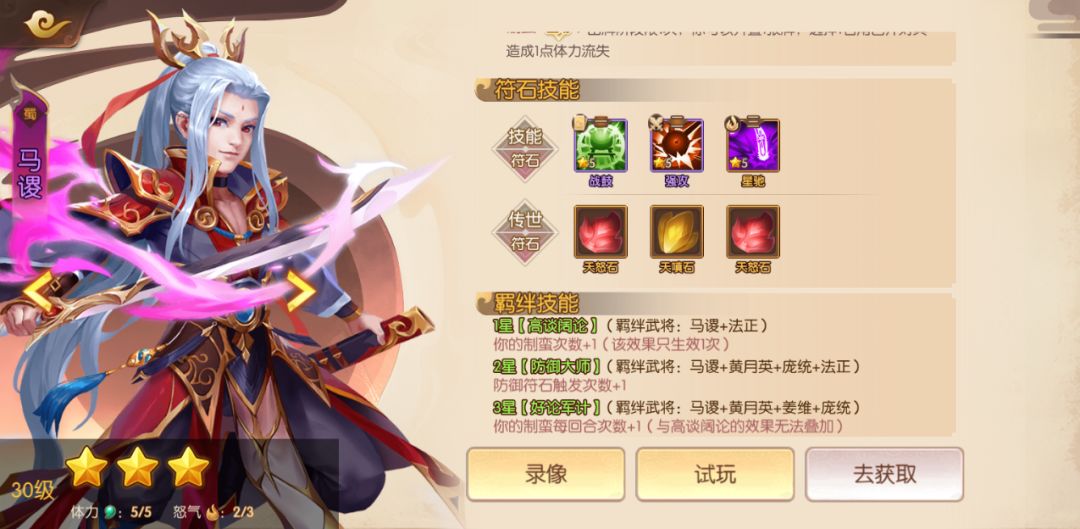 3星【忠贞礼节】:当你发动过秘计,则你下1次造成伤害或者体力流失的效果+1