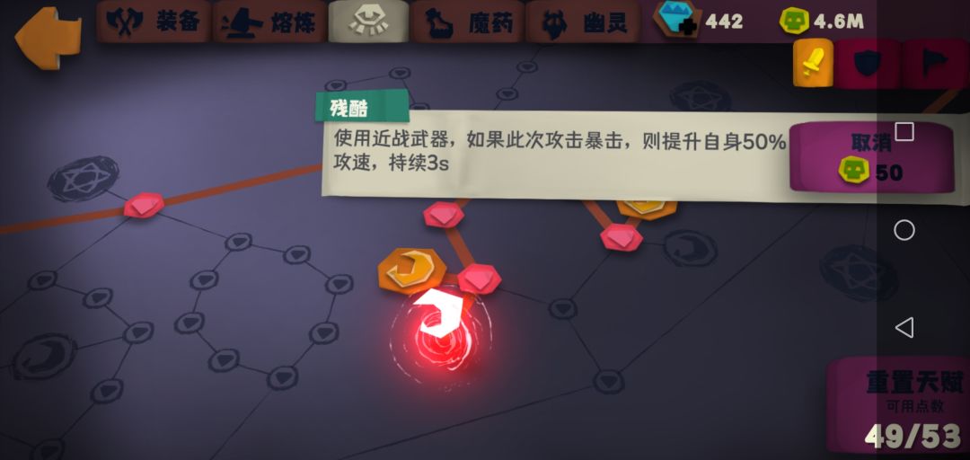 我这样点天赋,其实有很多是为了这个,因为血量低,所以伤害不够,每次血爆头把那些小怪清掉了之后留下一些皇冠怪死不掉,然后只打那一个的话,血爆头就触发很慢,打的时间比较长,我自己用的时候感觉半血就能杀。