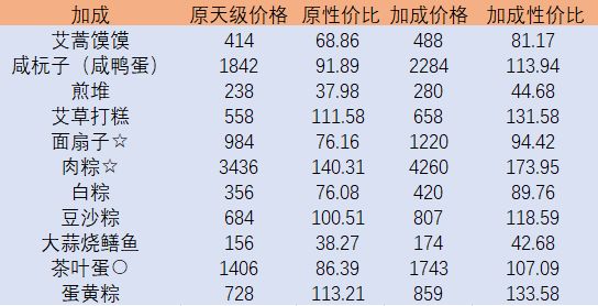 售价加成 1级/2级/3级食谱加成 12%/18%/24%