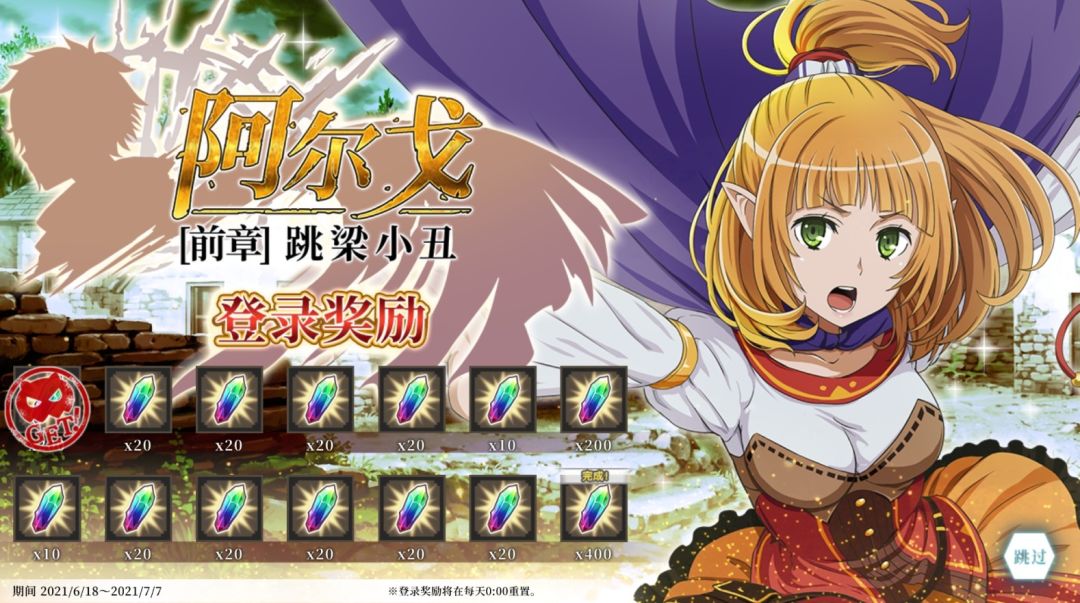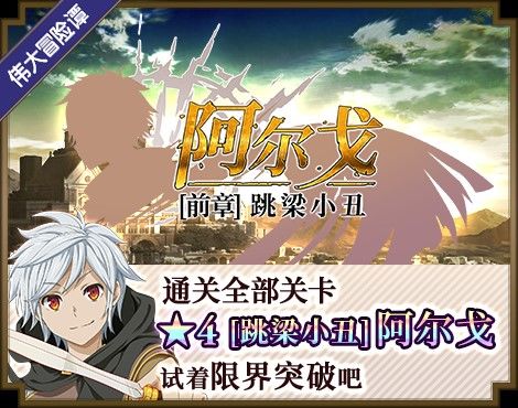 通关全部关卡可获得★4冒险者[跳梁小丑]阿尔戈!